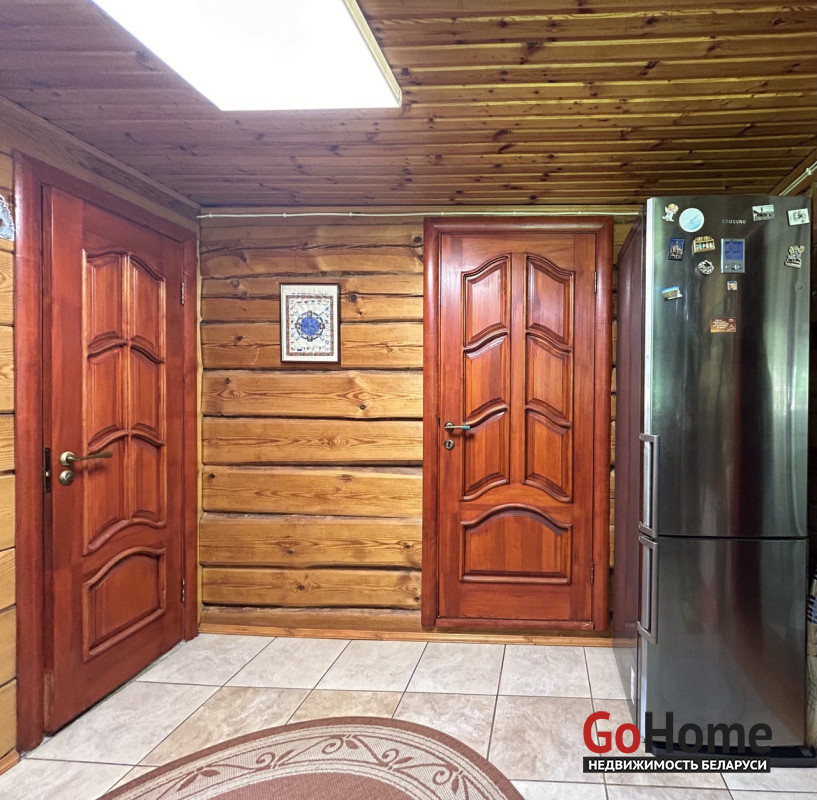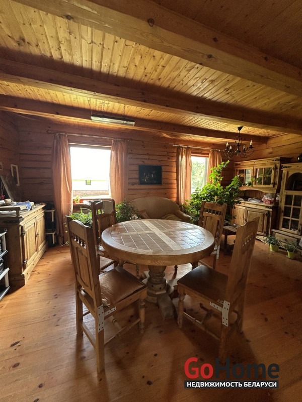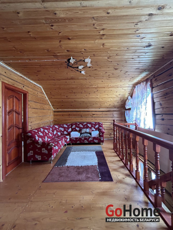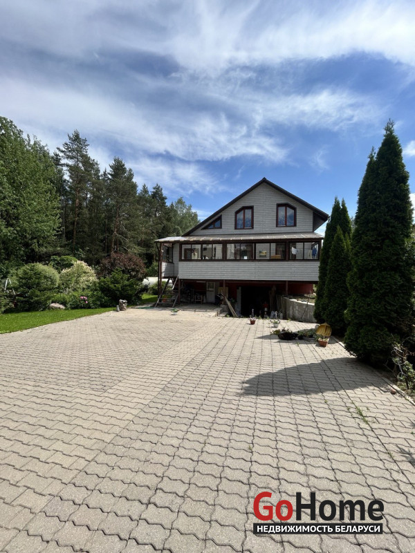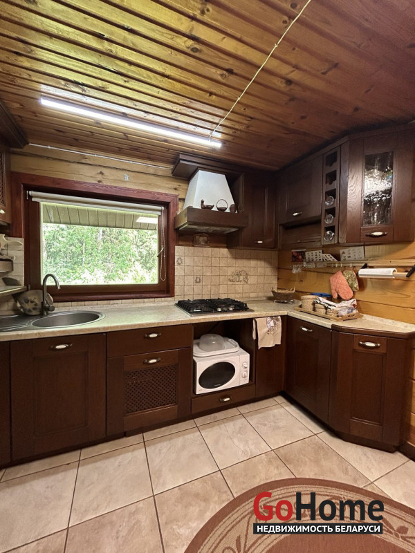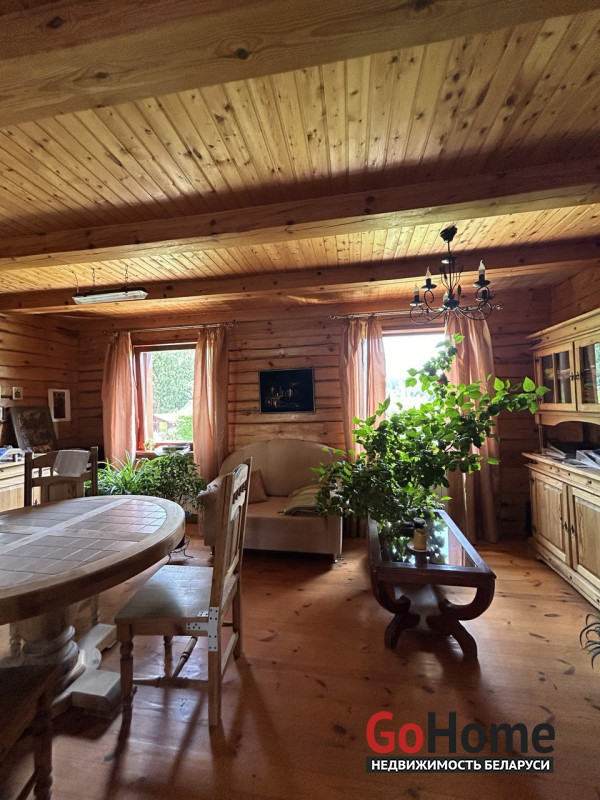 Продается дом в экологически-чистом районе. Расположен в элитном поселке д.Раубичи, Минского района, 17 км. от МКАД, Логойское направление.Тихое, спокойное место для жизни в окружении леса.Дом изготовлен из бруса. На входе в дом крытая терраса, прихожая, кухня, туалет и душевая, просторная гостиная с камином.В прихожей, сан.узле и кухне разведены теплые полы. Деревянные стеклопакеты из лиственницы, дом утеплен. На втором этаже две жилые комнаты и небольшая гостиная. В цокольном этаже большой гараж и кладовая.Скважина 40 м.,газовый двухконтурный котел, септик на 8 колец.