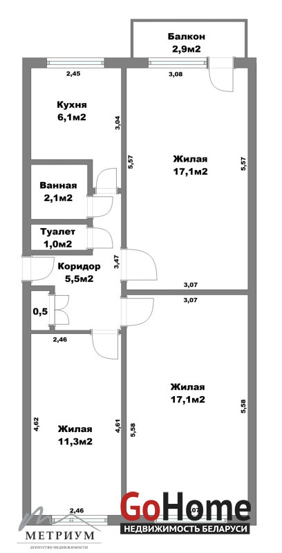 Квартира светлая и уютная, расположена на 3 этаже. Три раздельные комнаты 11,3м2, 17,1м2 и 17,1м2 выходят на обе стороны дома; в одной из комнат-балкон. Ремонт делали для себя: на полу новая стяжка и только потом плитка и ламинат, заменена электрика во всей квартире. Заведено оптоволокно. Окна ПВХ. В квартире во все сезоны поддерживается комфортная температура.
