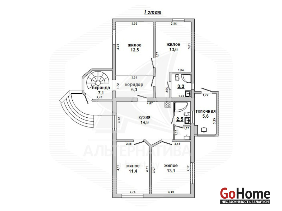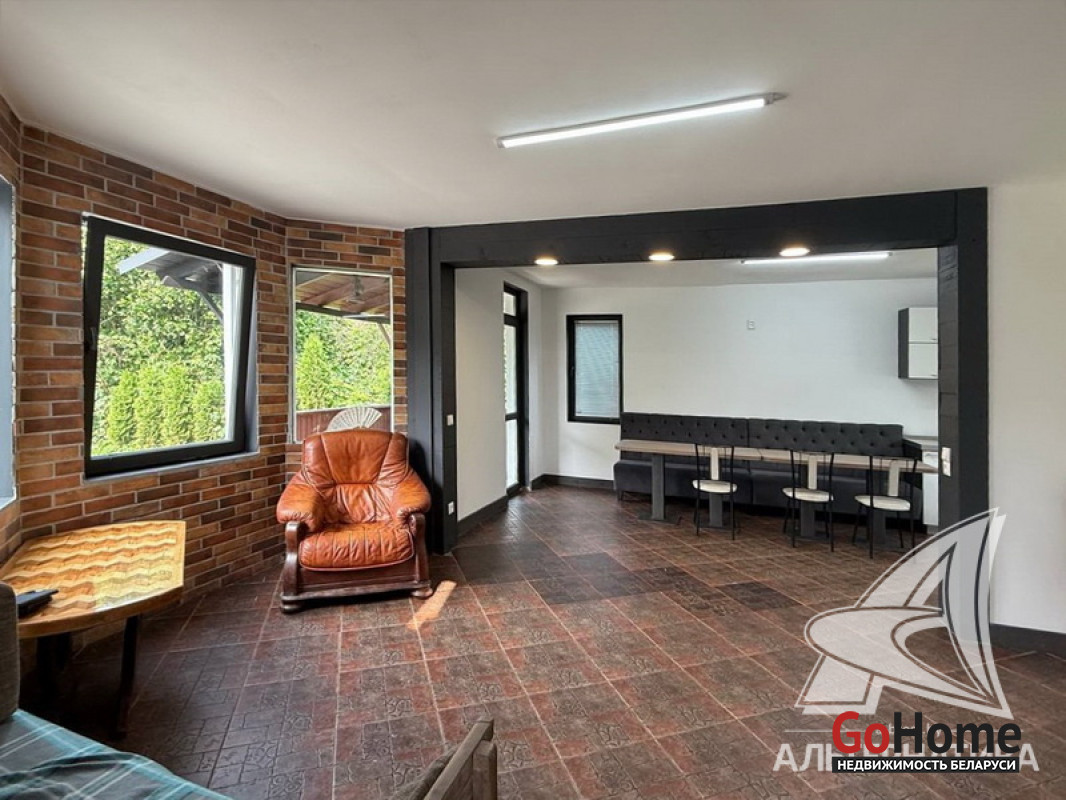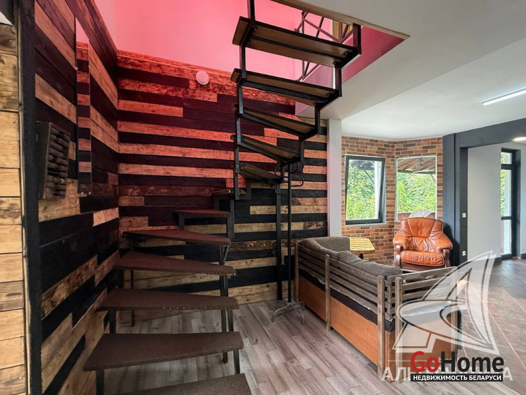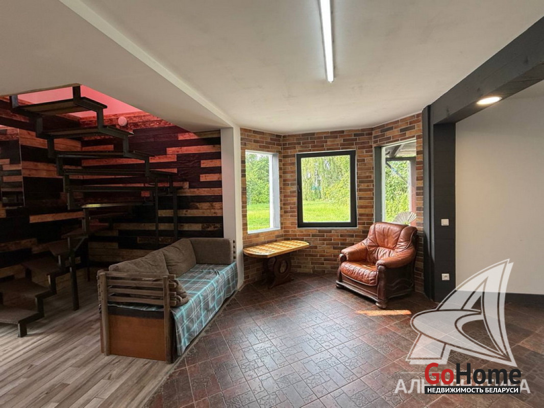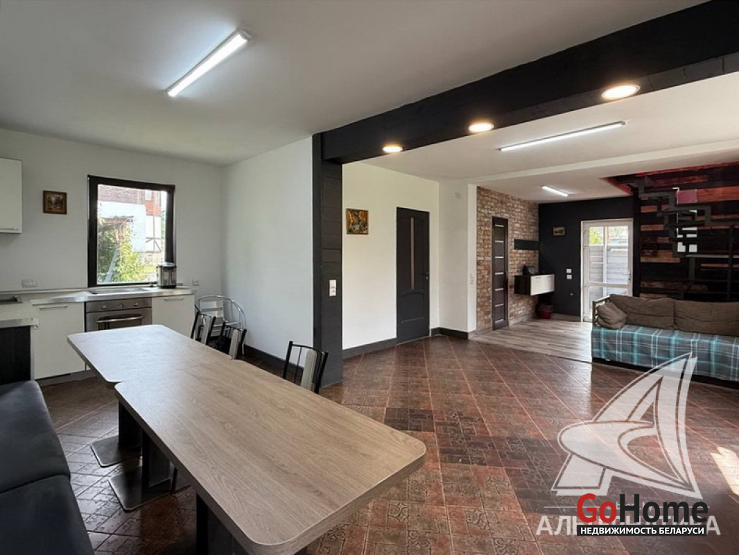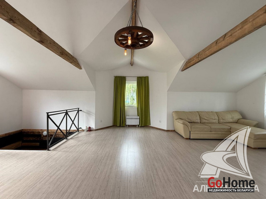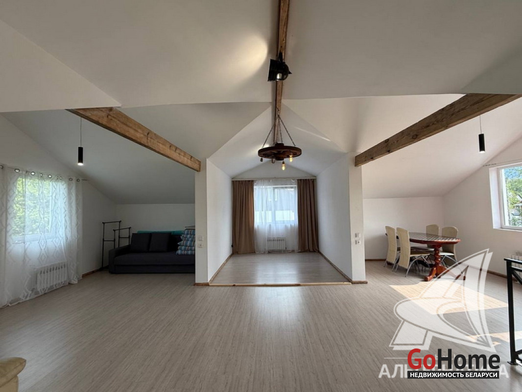 Жилой дом в г.Кобрине. 1936 г.п. 2 этажа. Общ.СНБ - 179,8 кв.м, общ.- 171,6 кв.м, жил.- 114,9 кв.м, кух.- 14,9 кв.м. 5 комнат, высота потолка - 2,50 м.