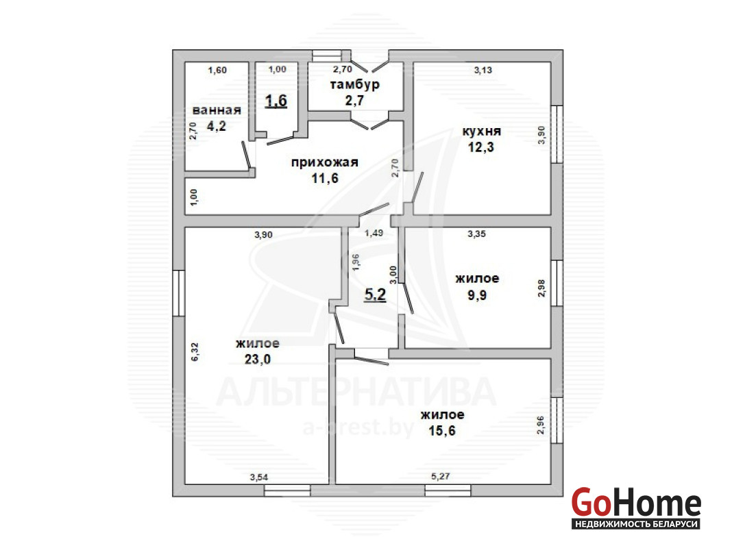 Жилой дом в г.Бресте. 1961 г.п. 1 этаж, мансарда. Общ.СНБ - 140,0 кв.м, общ.- 140,0 кв.м, жил.- 85,0 кв.м, кух.- 12,3 кв.м. 5 комнат, высота потолка - 2,90 м.