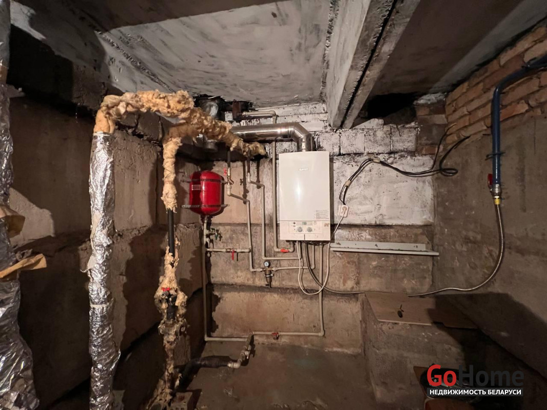 В цокольном этаже, в отдельно выделенной топочной установлен газовый двухконтурный котел. Вода горячая и холодная в доме. Центральный водопровод. Электричество – 220/380В.