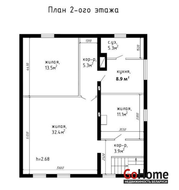 Второй этаж – две спальни, санузел, кухня и гостиная.