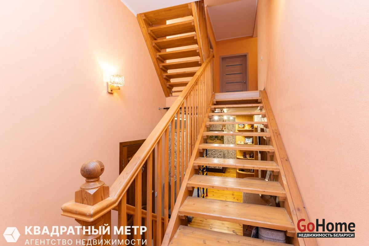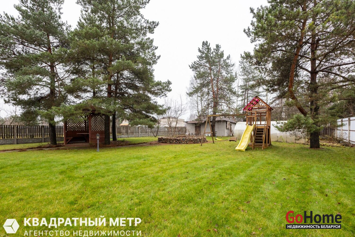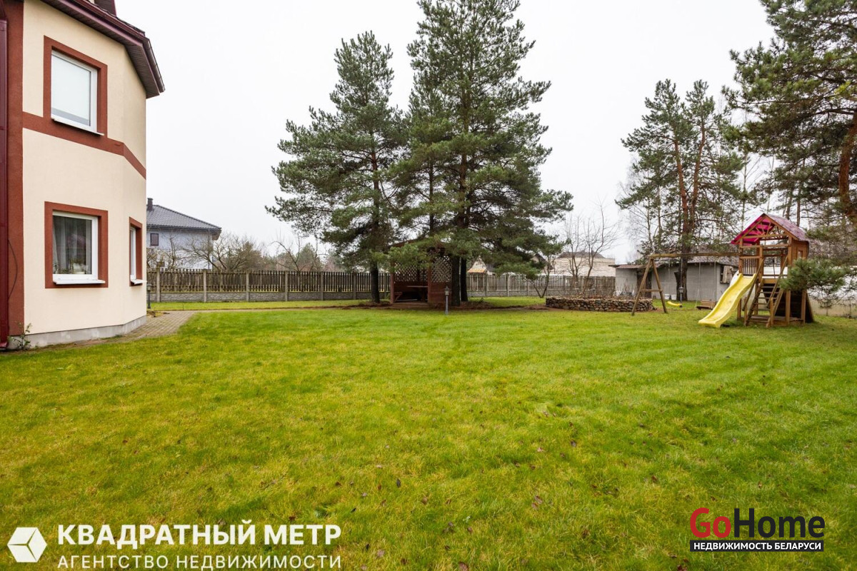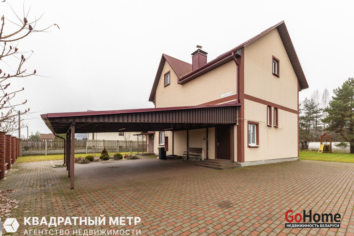 Аккуратный, красивый дом в Колодищах. • Самое удобное расположение из возможных в пригороде: до Минска 3 минуты на автомобиле или 3-5 остановок на автобусе. До метро Уручье 15-17 минут на автобусе (8 остановок на 194С). Остановка в 1 минуте от дома. Новая школа и детский сад в 2 минутах пешком. В пешей доступности продуктовые магазины, аптеки. Асфальт до дома. В 5 мин езды Гольф-Клуб в Зеленой Гавани. Район с новой равномерной застройкой, окружен лесом.• Живописный участок прямоугольной формы 14,98 соток, огорожен со всех сторон. Ровный ухоженный газон. Взрослые сосны.• Двухуровневый дом из керамзит-бетонных блоков 50 см, оштукатурен и окрашен. Фундамент утеплен. Крыша металло-черепица. Стеклопакеты. Двухконтурный газовый котел на отопление и подогрев воды. Электричество 3-фазное 220 и 380. Скважина. Проложены коммуникации для подключения к центральному водопроводу (он имеется). Канализация местная: переливной септик 3 колодца по 3 кольца плюс фильтрационное поле.• 5 жилых комнат, большая кухня, 2 санузла на каждом этаже, топочная, просторная прихожая. Мансардный этаж может быть оборудован под жилое помещение. Качественная удобная лестница. Подвал.• Сарай для хранения инвентаря. Большой навес для нескольких автомобилей.