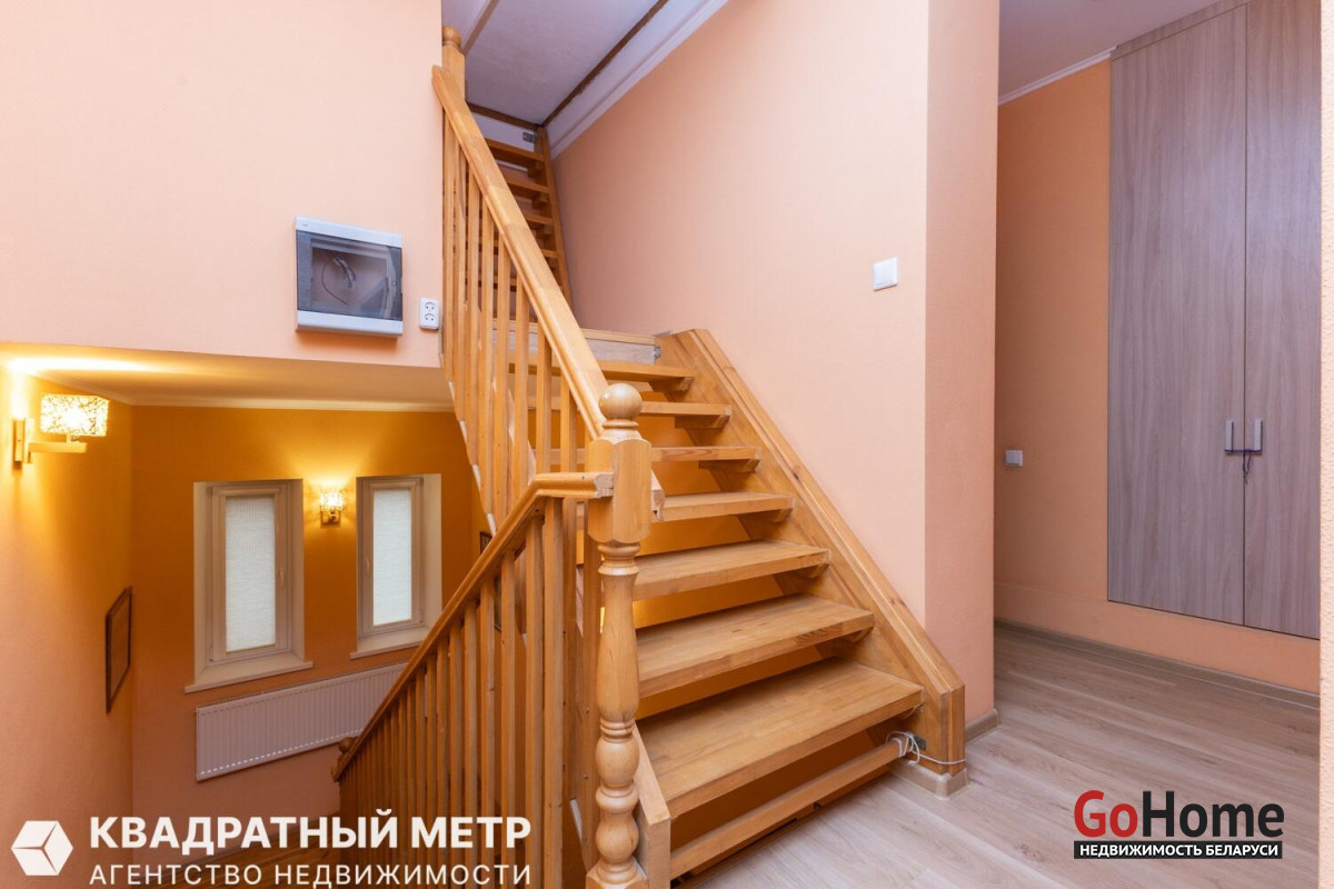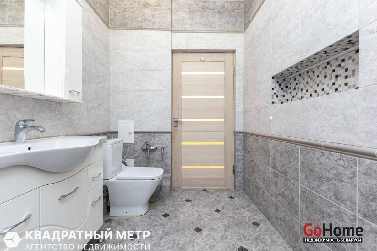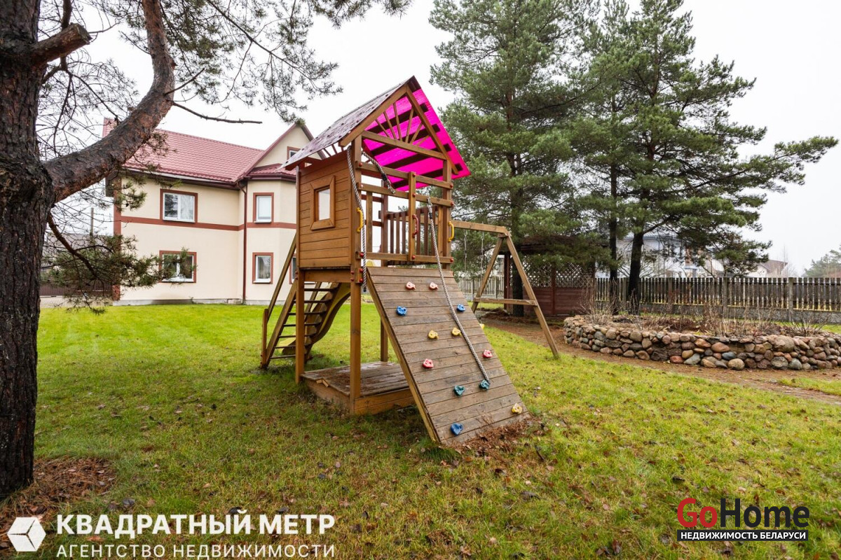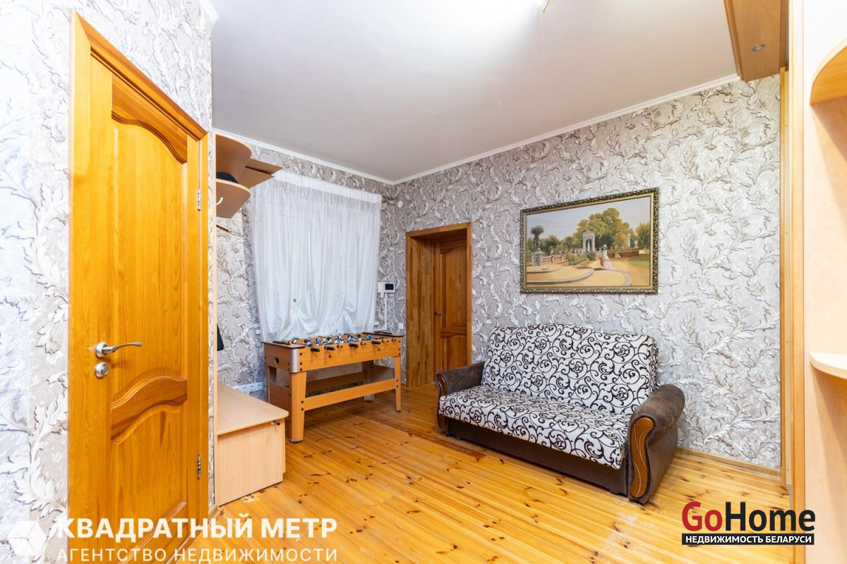 Аккуратный, красивый дом в Колодищах. • Самое удобное расположение из возможных в пригороде: до Минска 3 минуты на автомобиле или 3-5 остановок на автобусе. До метро Уручье 15-17 минут на автобусе (8 остановок на 194С). Остановка в 1 минуте от дома. Новая школа и детский сад в 2 минутах пешком. В пешей доступности продуктовые магазины, аптеки. Асфальт до дома. В 5 мин езды Гольф-Клуб в Зеленой Гавани. Район с новой равномерной застройкой, окружен лесом.• Живописный участок прямоугольной формы 14,98 соток, огорожен со всех сторон. Ровный ухоженный газон. Взрослые сосны.• Двухуровневый дом из керамзит-бетонных блоков 50 см, оштукатурен и окрашен. Фундамент утеплен. Крыша металло-черепица. Стеклопакеты. Двухконтурный газовый котел на отопление и подогрев воды. Электричество 3-фазное 220 и 380. Скважина. Проложены коммуникации для подключения к центральному водопроводу (он имеется). Канализация местная: переливной септик 3 колодца по 3 кольца плюс фильтрационное поле.• 5 жилых комнат, большая кухня, 2 санузла на каждом этаже, топочная, просторная прихожая. Мансардный этаж может быть оборудован под жилое помещение. Качественная удобная лестница. Подвал.• Сарай для хранения инвентаря. Большой навес для нескольких автомобилей.