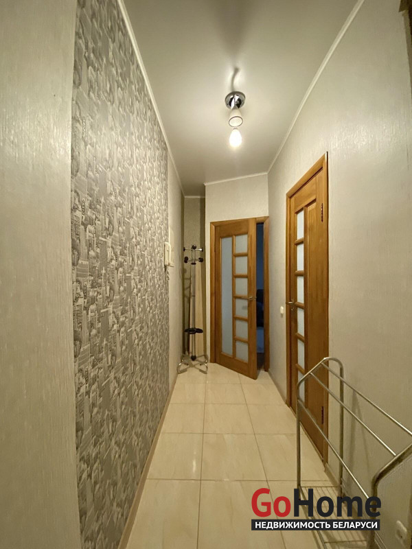 В квартире совмещённый санузел, имеется балкон, установлены стеклопакеты, межкомнатные двери из массива и металлическая входная дверь. Потолки выполнены в снежке (высота 2,5 м) и натяжном варианте (в коридоре). Полы оформлены паркетом в комнате и плиткой в коридоре, стены оклеены обоями, а в санузле используется современная плитка. В квартире заменён полотенцесушитель и сантехнические трубы, установлен домофон.