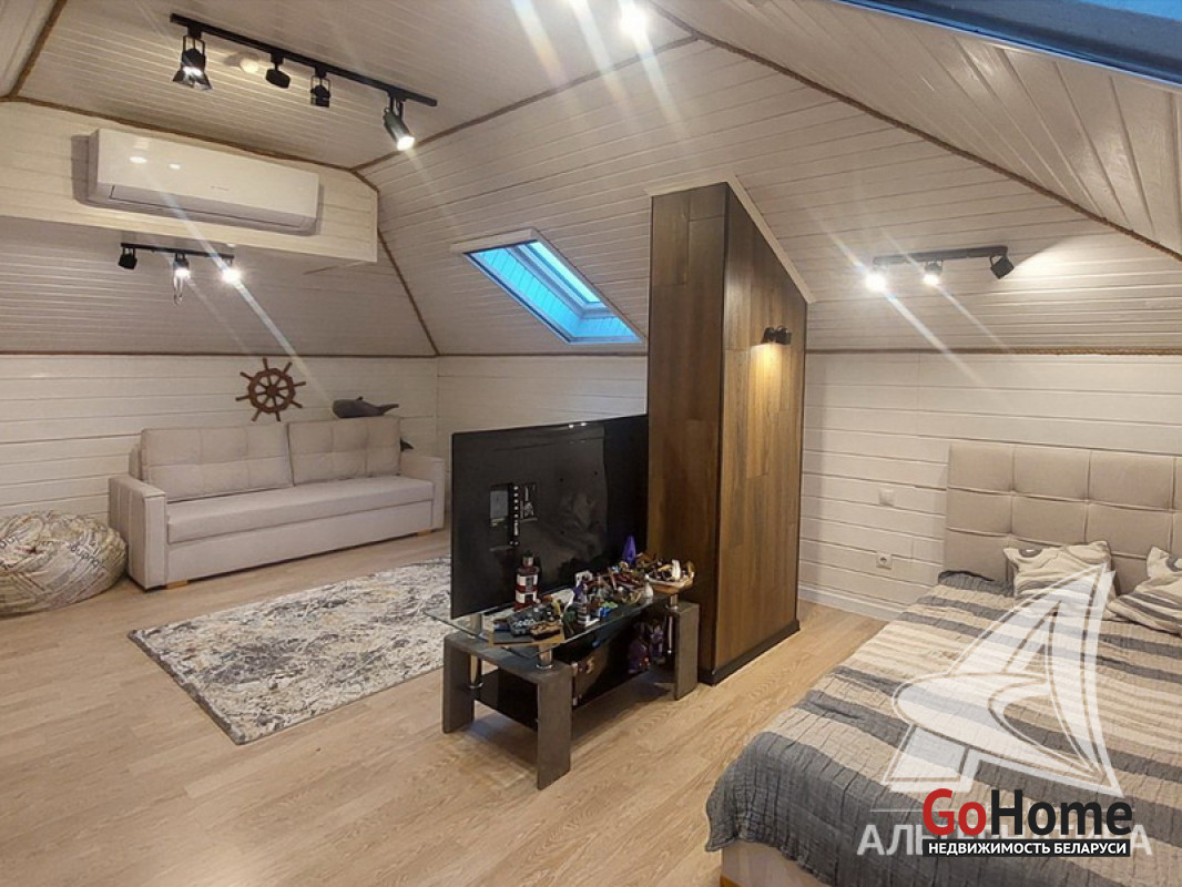 Дачный дом жилого типа в Брестском р-не. 2015 г.п. 1 этаж, мансарда. Общ.СНБ - 141,0 кв.м, общ.- 141,0 кв.м, жил.- 80,5 кв.м, кух.- 7,4 кв.м. 3 комнаты.