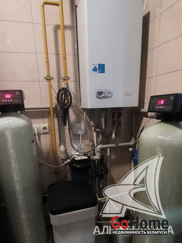 Коммуникации: отопление - газовый котел, газ - централизованный (в доме), водоснабжение - скважина, электричество - централизованное, канализация - автономная.