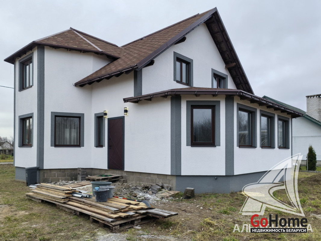 Жилой дом в Кобринском р-не. 2025 г.п. 1 этаж, мансарда. Общ.СНБ - 163,9 кв.м, общ.- 163,9 кв.м, жил.- 108,1 кв.м, кух.- 17,7 кв.м. 5 комнат, высота потолка - 2,70 м.