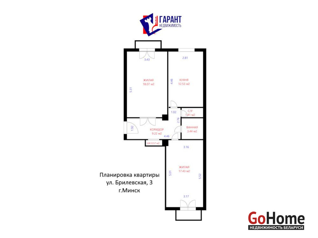 - Просторная кухня 12,53 м2, где достаточно
