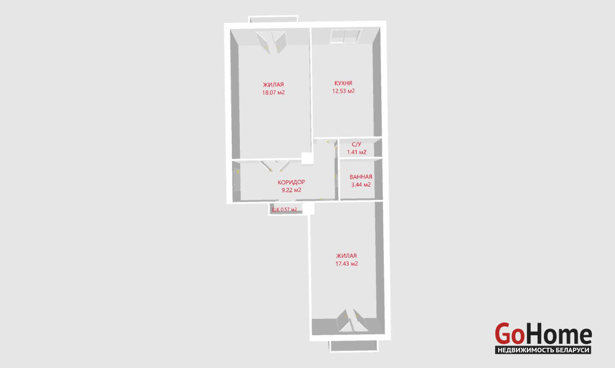 - Две комнаты по 18 м2 на две стороны квартиры