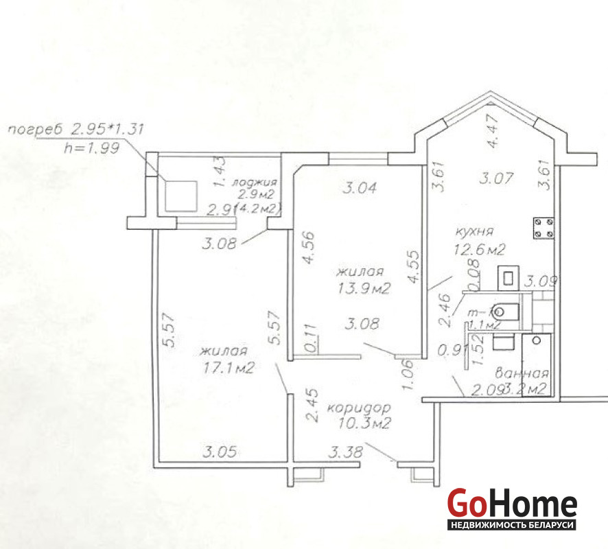 Продаётся двухкомнатная квартира со строительной отделкой.