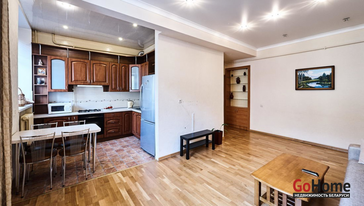 Центр города, в двух шагах от ст.м. "Купаловская". Квартира продается с мебелью и техникой. Огороженная территория. Отличное вложение денег под гостевой бизнес. Чистая продаж.