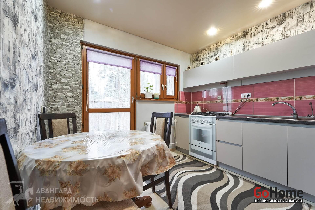 В квартира сделан свежий ремонт на кухне, в ванной комнате и детской. При ремонте использовали импортные, строительные материалы для внутренней отделки. Цветовая гамма выдержана в одном тоне. На кухне установлена современная кухня, рабочий фартук уложен новой плиткой. В ванная комната облицованы стены и пол. Натяжной потолок в детской комнате и на кухне. В комнатах и коридоре на полу паркет. По всей квартире установлены деревянные стеклопакеты.