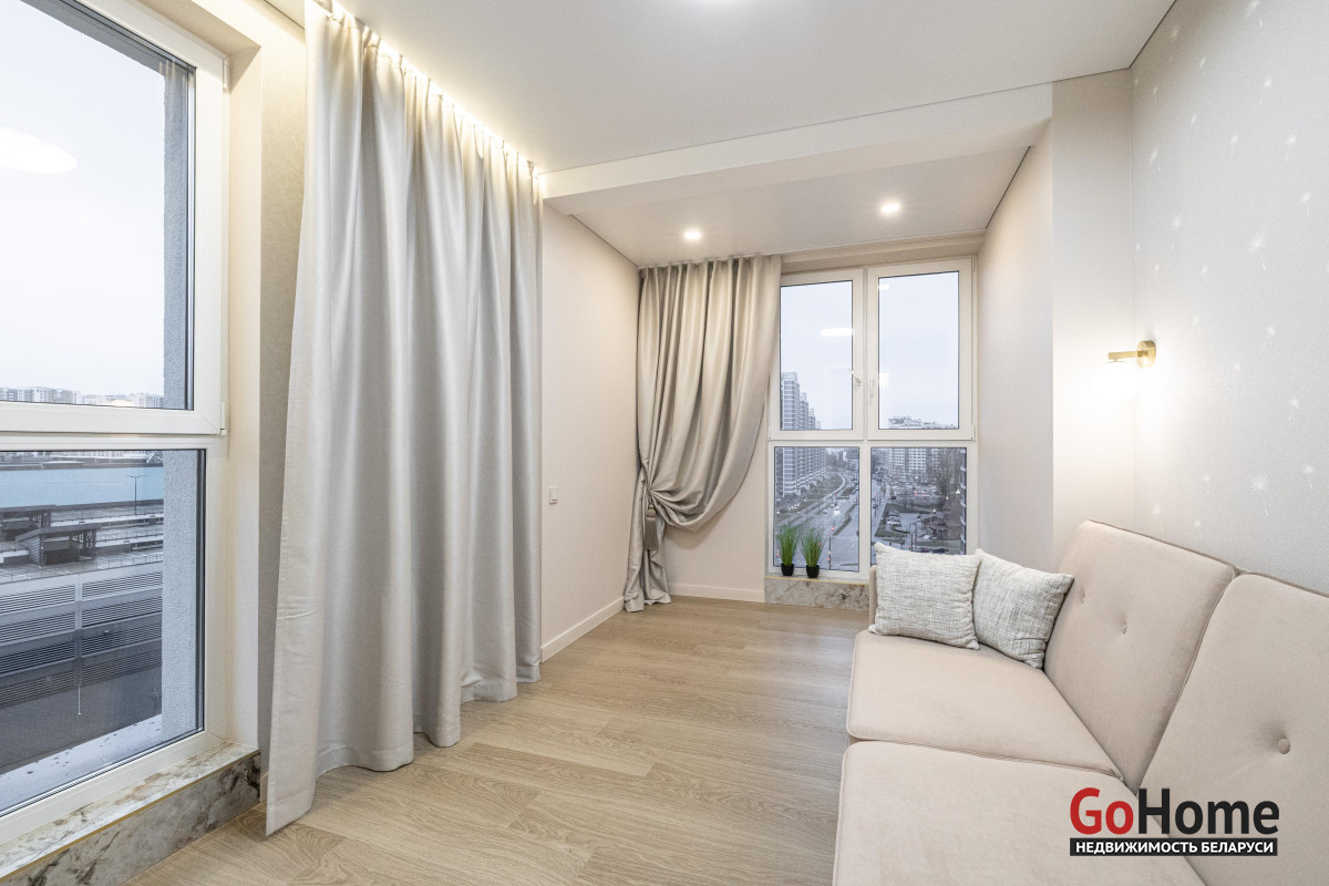 Окна выходят прямо на «Avia Mall» — крупнейший торгово-развлекательный центр Беларуси.Просторное, стильное лобби с дизайнерской отделкой.Современный лифт, видеонаблюдение.Состояние квартиры позволяет сразу въехать и жить!