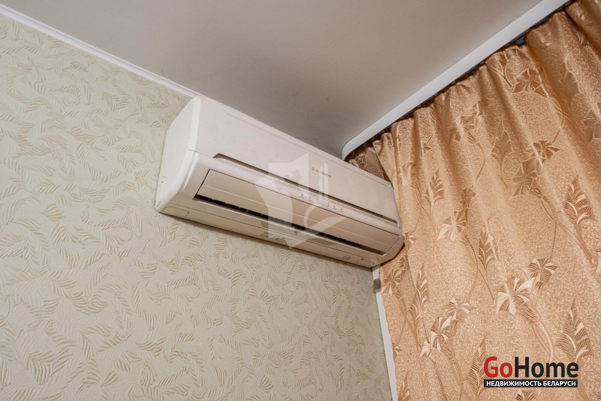 В комнате есть кондиционер, позволяющий комфортно сохранять приятную температуру в любое время года.
