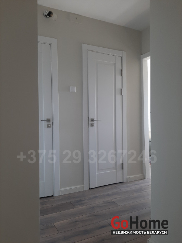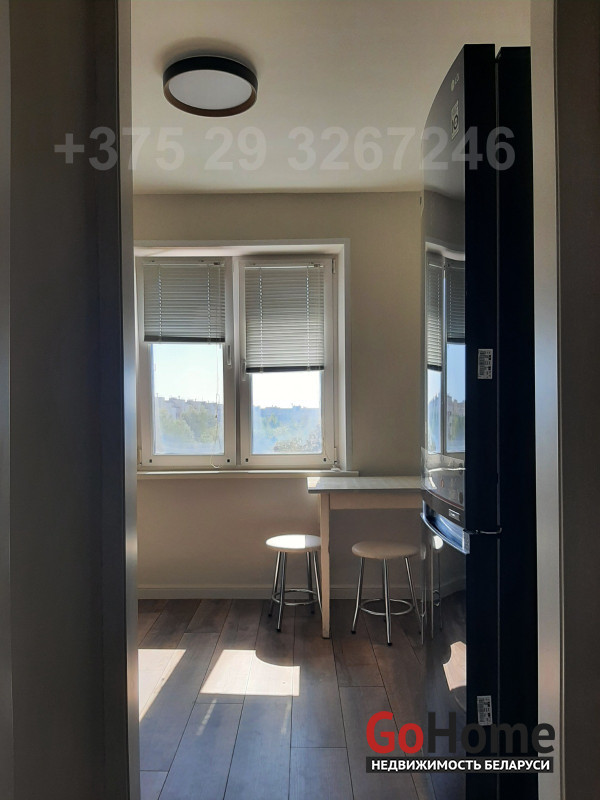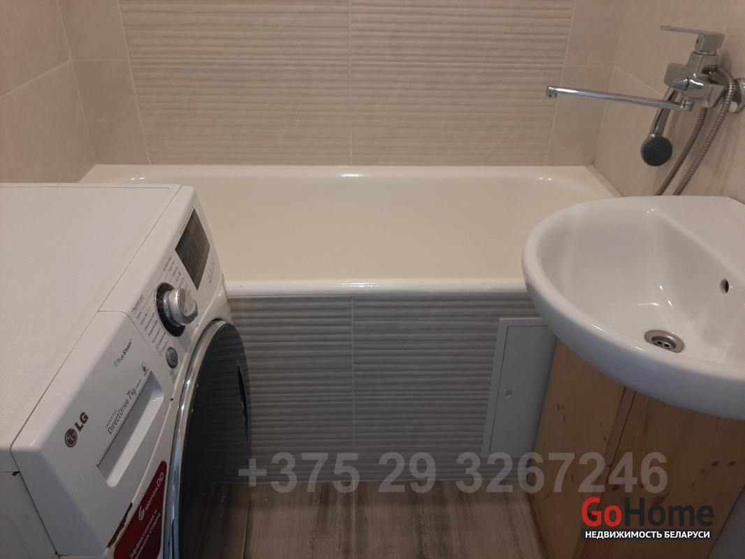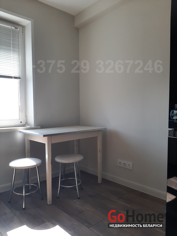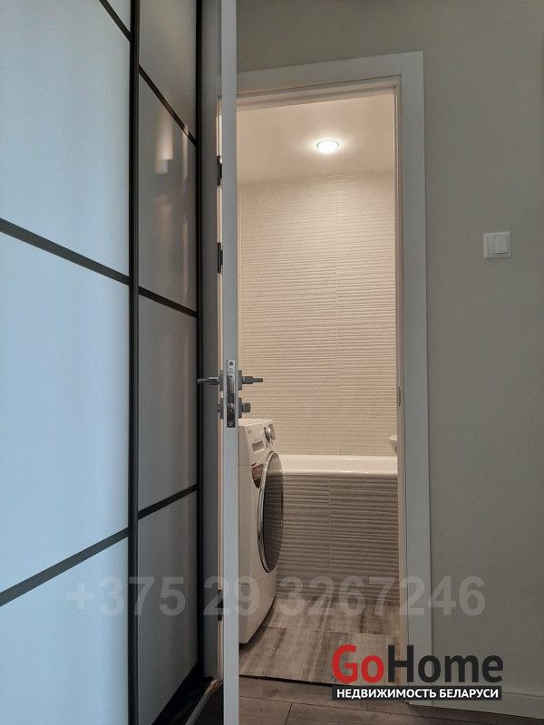 Вся необходимая бытовая техника остается в квартире (варочная панель, духовой шкаф, стиральная машина, холодильник). На полу ламинат.