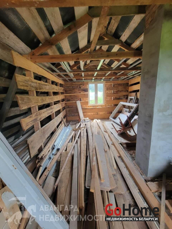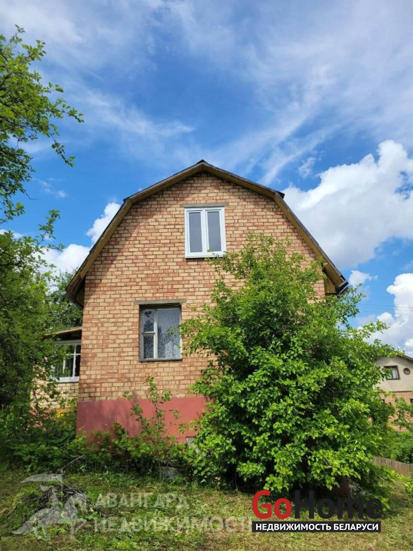 Двухэтажный деревянный дом обложенный кирпичом. Первый этаж – сруб, второй этаж жилая мансарда – сборно-щитовой, также обложен кирпичом. Фундамент дома из блоков ФБС. Перекрытия первого этажа железобетонные, второго - деревянные балки. Крыша накрыта шифером. На втором этаже установлены пластиковые стеклопакеты, что дает дому дополнительную тепло и звуко изоляцию. Внутри пол и стены – деревянная доска. Отопление печное, электричество заведено в дом, вода сезонная, санузел на улице. Общая площадь дома 79.4 м2, пространство первого этажа позволяет организовать кухню, гостиную или спальную комнату, также имеется коридор. В доме на цокольном этаже расположен вместительный гараж с бетонным погребом, чисто и сухо.