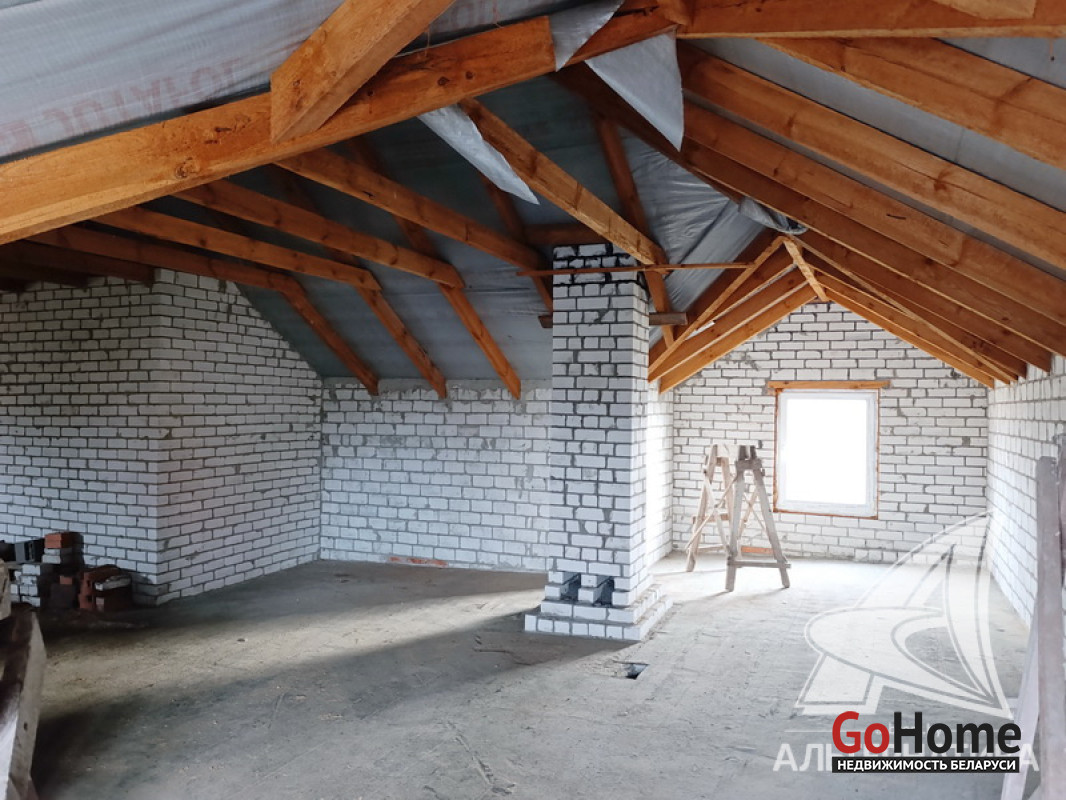 Жилой дом под чистовую отделку в Брестском р-не. 2024 г.п. 1 этаж, мансарда. Общ.СНБ - 147,9 кв.м, общ.- 105,2 кв.м, жил.- 50,0 кв.м, кух.- 14,0 кв.м. 3 комнаты, высота потолка - 2,73 м.