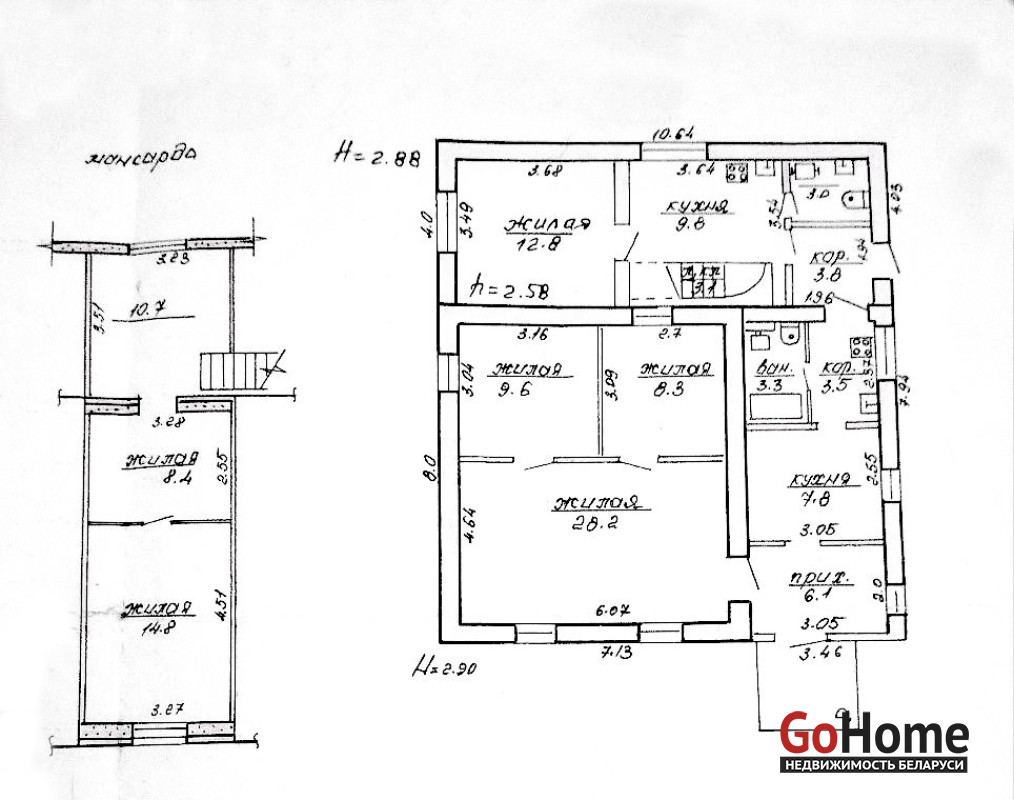 Дом 2004 года постройки, с площадью 133 кв. м ( по СНБ), 99,3 кв. м - общая, жилая 58.9, кухни в доме их 2 общей площадью 17.6 кв. м. Имеется 2 отдельных входа. В доме 6 жилых комнат, 2 с/у, 2 кухни. Коммуникации все в доме. 2 независимых газовых котла. Вода и канализация - центральная. Окна ПВХ. Металлическая входная дверь. Частично остаётся мебель, по договоренности.