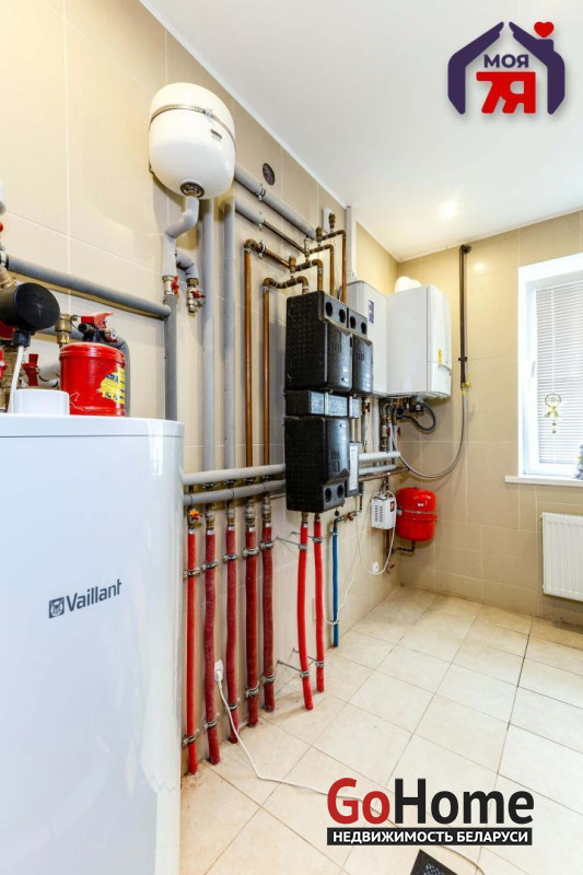 -Все коммуникации проведены в дом: отопление обеспечивается газовым котлом, водоснабжение - центральное, канализация - местная.