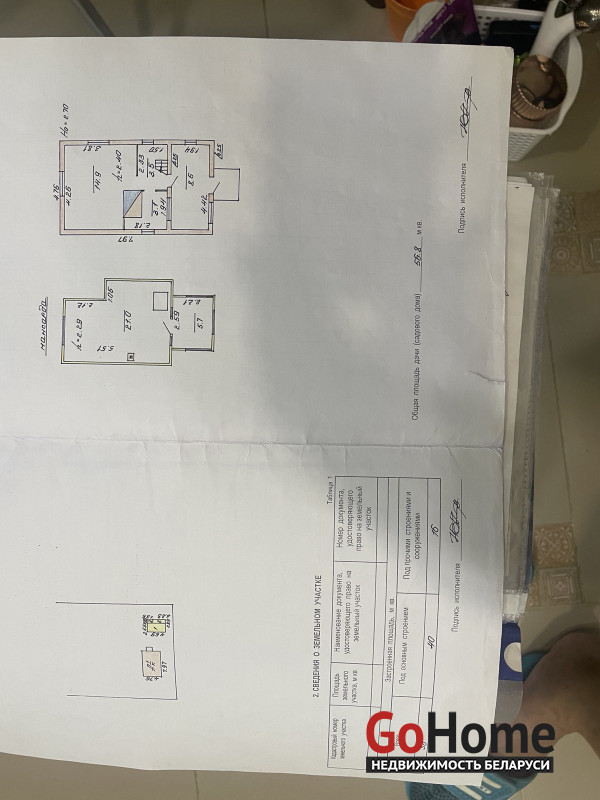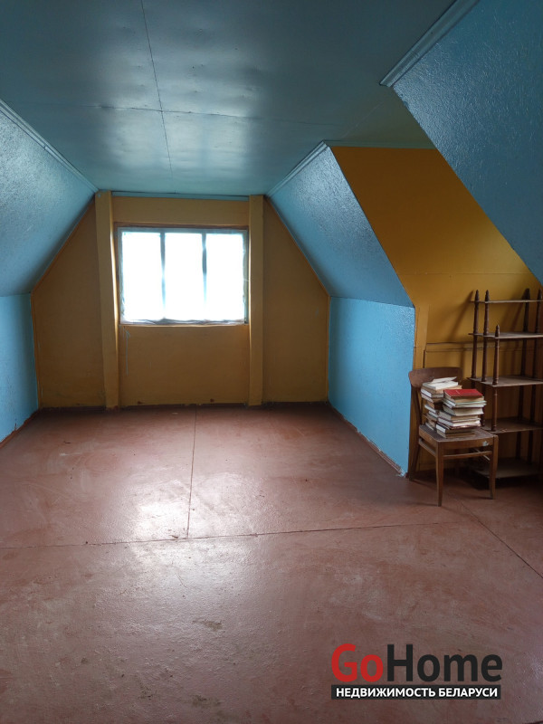 Год постройки — 2008. Общая площадь — 56,8 м². В доме есть комната (15 м²), веранда (8,6 м²), мансарда (21 м²) и балкон (5,7 м²). В доме установлена печь с небольшой лежанкой.