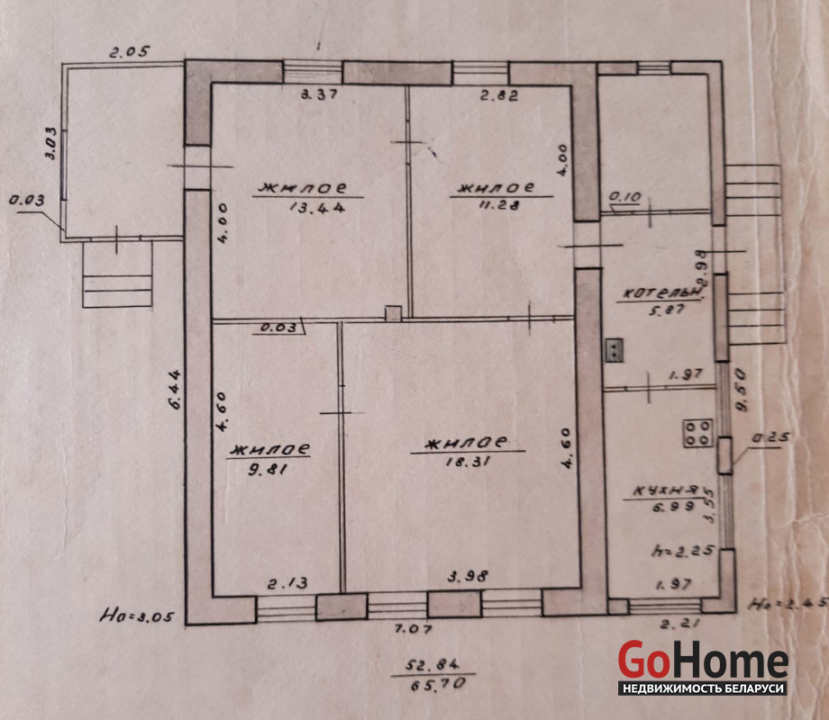 Площадь общая 65.70м2, жилая – 52,84 м², кухня – 6,99 м².