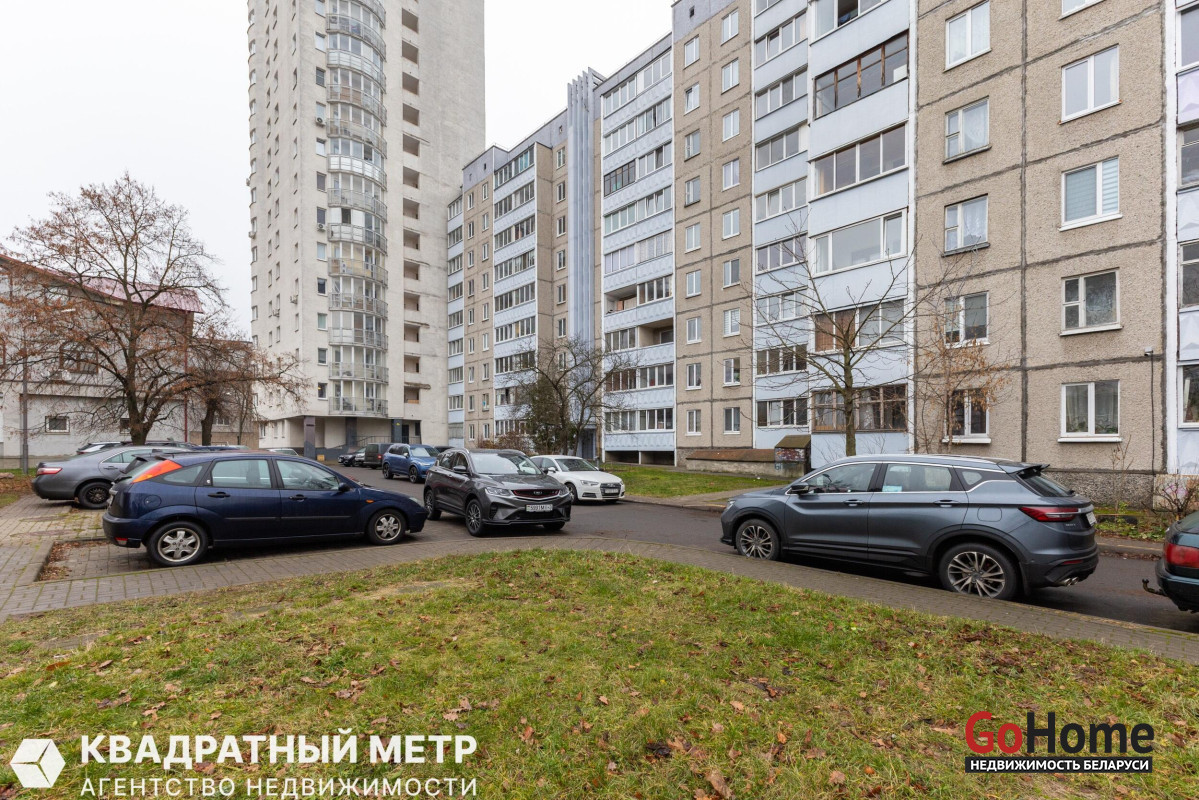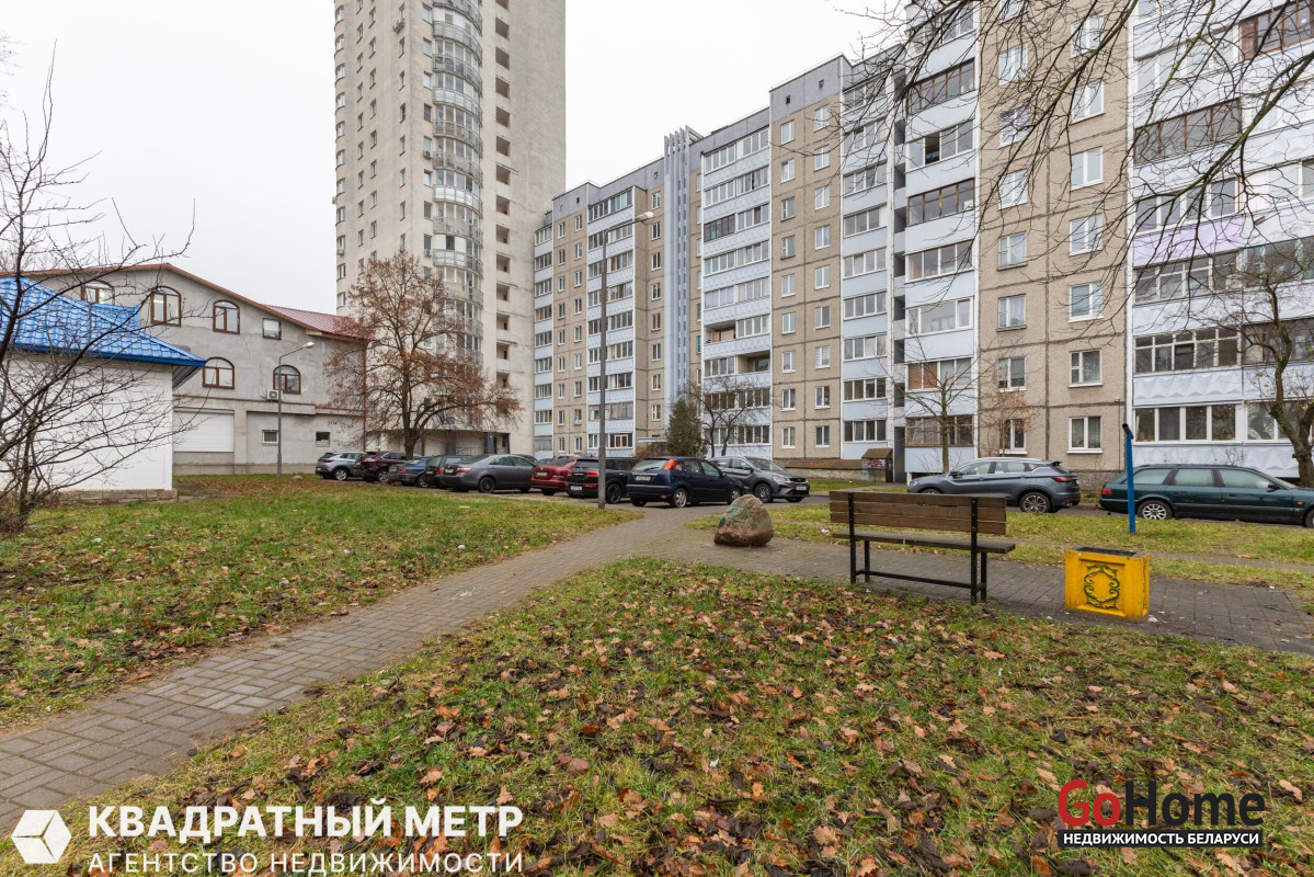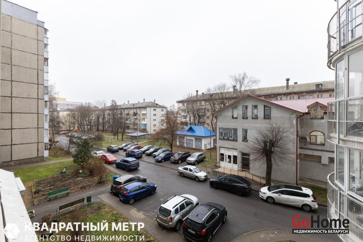 Лучшая локация в центре: Тихий зелёный двор, окна на запад. В шаговой доступности — метро «Площадь Якуба Коласа» (10 мин), площадь Победы, ЦУМ, Комаровский рынок, БГУИР, филармония, вся инфраструктура города.