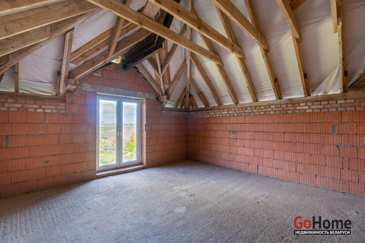 Блок силикатный, утеплен и оштукатурен. Первый этаж: полы утеплены, облицованы плиткой керамической (Италия), стены оштукатурены и оклеены обоями. Окна ПВХ, потолок дерево. Мансарда: отделка дерево. Лестница деревянная. Печь три в одном: отопительная, русская, духовой шкаф. В летнем доме установлена душевая кабина, кухня, бойлер.