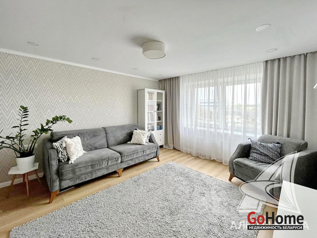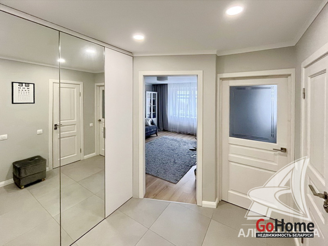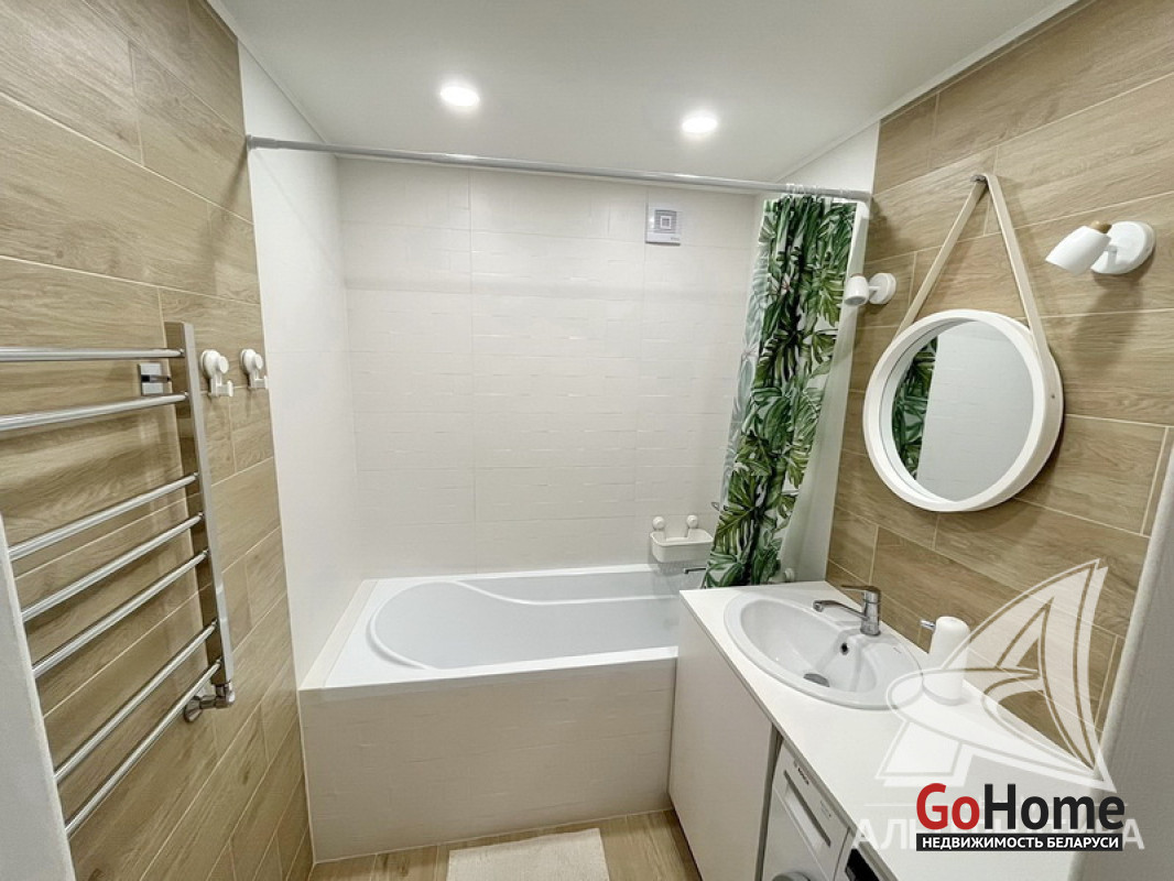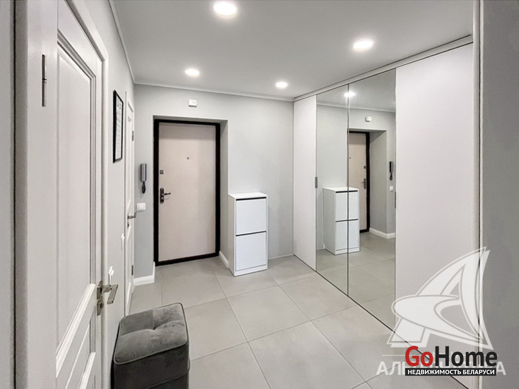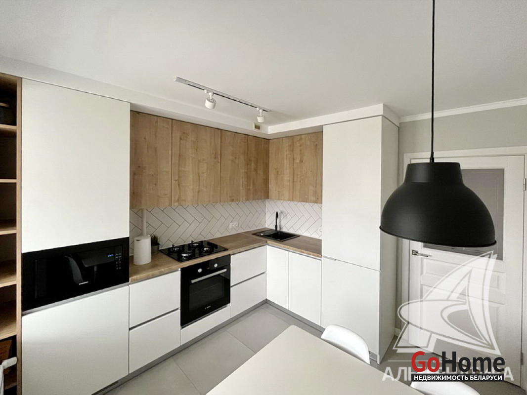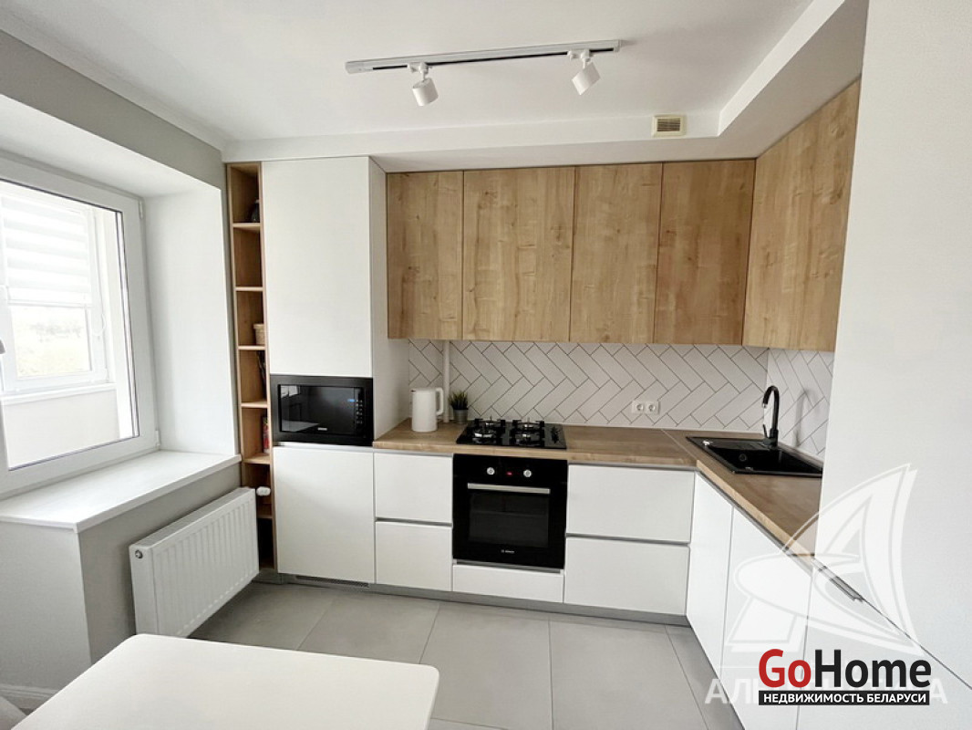 1-комнатная квартира, г. Брест, ул. Мошенского, 2017 г.п., 3 / 5 кирпич, 45,4 / 43,4 / 19,9 / 9,3, санузел раздельный, лоджия застеклена, стеклопакеты, межкомнатные двери - массив, входная дверь металлическая, потолки - снежка (в кухне) и из гипсокартона, полы - ламинат (в комнате) и плитка (в кухне, в коридоре), есть подогрев пола (в коридоре, в кухне, в ванной), стены оклеены обоями, в санузле современная плитка, инсталляция, автономный газовый котел, телефон, домофон. Кухонный гарнитур, варочная поверхность, духовой шкаф, микроволновая печь, холодильник, шкаф-купе. Квартира с хорошим ремонтом. Тамбур на две квартиры. Чистый подъезд. Лот - 252204