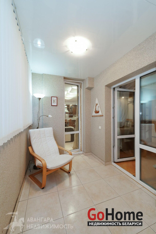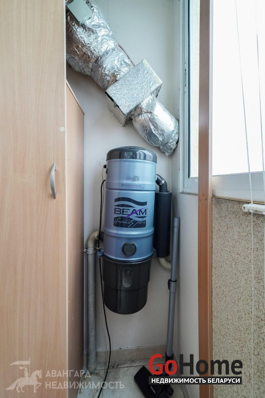 Из кухни - столовой предусмотрен выход на лоджию, которую можно использовать, как зону отдыха или рабочее пространство. Вторая часть лоджии используется, как место для сушки белья-вешалка стационара имеется. В шкафу для инструментов установлен центральный пылесос и система вентиляции с подогревом калорифером.