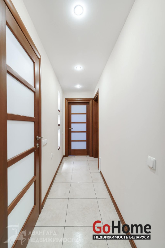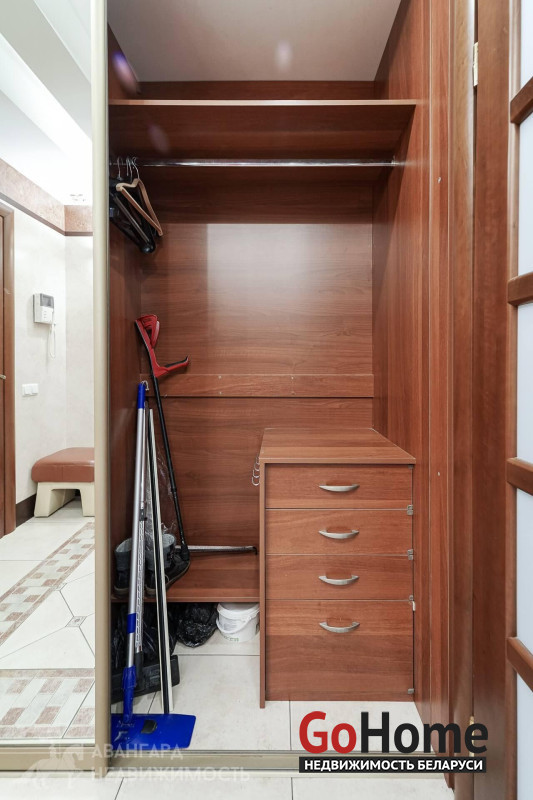 Прихожая просторная, обустроена встроенным шкафом для одежды и хранения. Рядом кладовая-постирочная с возможностью подключения стиральной машины к установлены вывода воды, канализации и электричества. Имеется встроенный шкафчик для хранения обуви в коробках. Всего в квартире обустроена 6 встроенный шкафов.