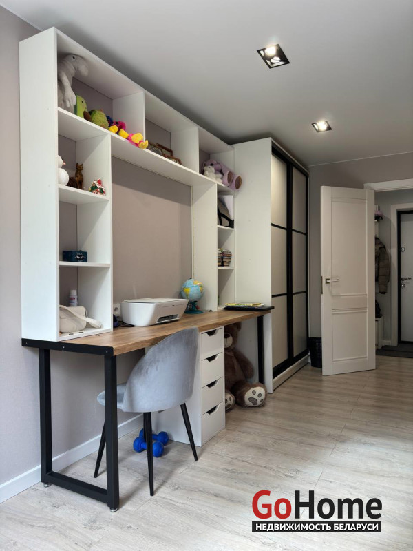 Вся мебель на заказ в одном стиле с качественной фурнитурой и фасадами. В детской комнате сделано зонирование для двоих детей. Балкон утеплен (зимой как и в квартире тепло). Потолки натяжные, в спальне теневой профиль. Установлена сплит система холод/ тепло в межсезонье очень удобно. На лестничной площадке видеонаблюдение.