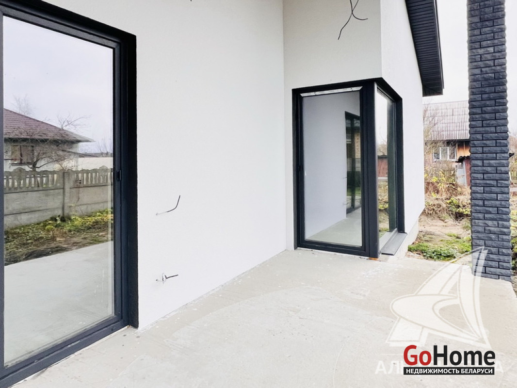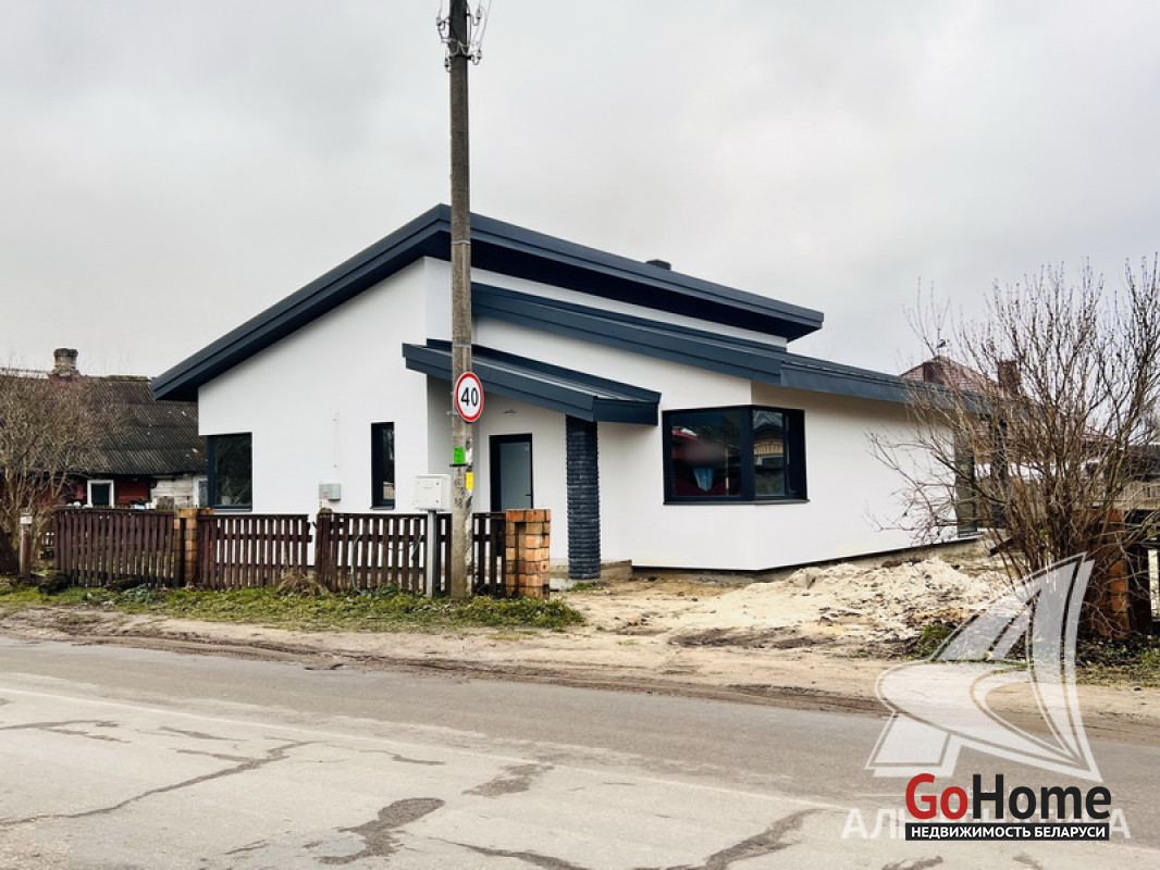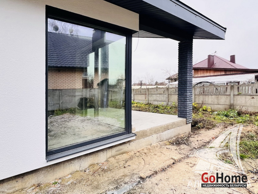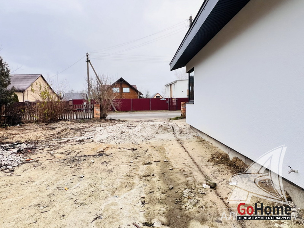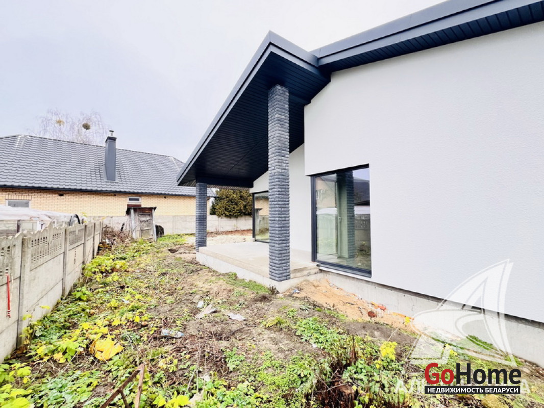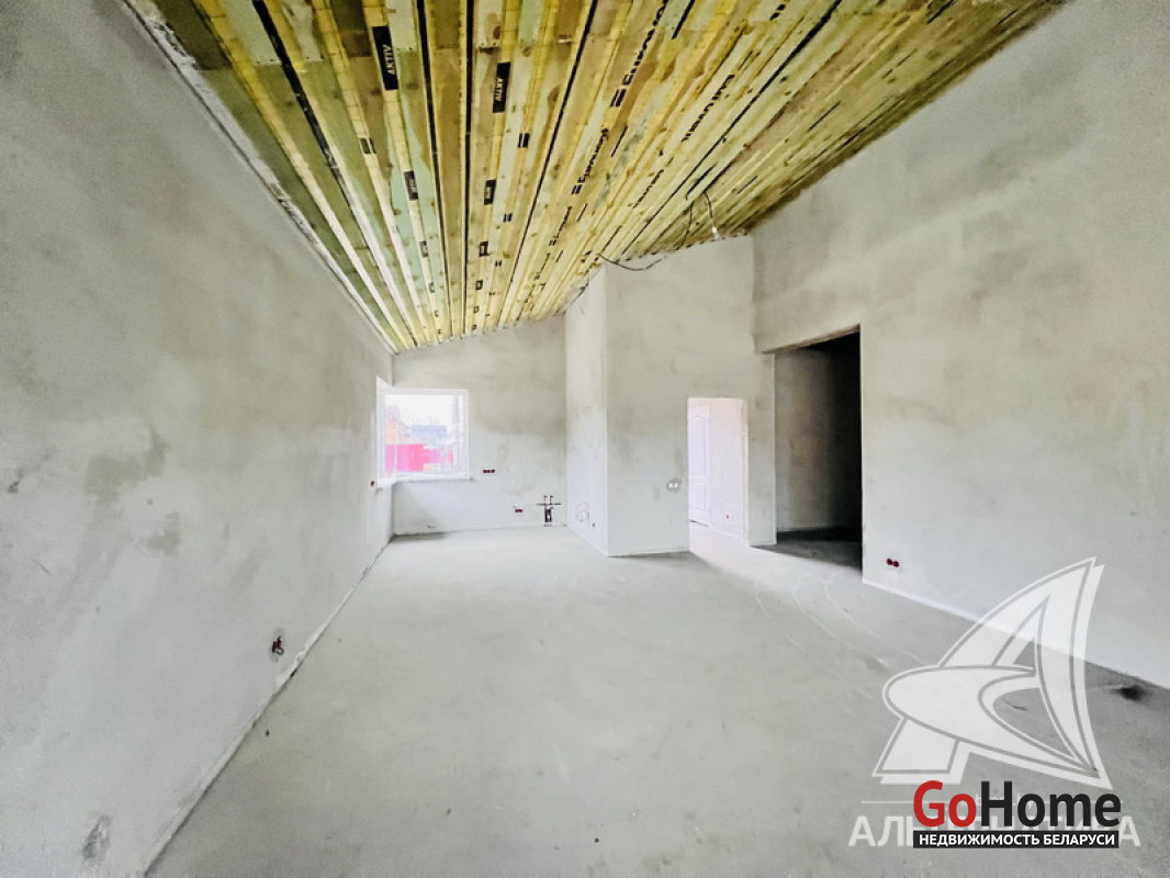 Жилой дом под чистовую отделку в Брестском р-не. 2025 г.п. 1 этаж. Общ.СНБ - 124,4 кв.м, общ.- 124,4 кв.м, жил.~ 80,0 кв.м, кух.~ 15,0 кв.м. 4 комнаты, высота потолка - 2,80 м.