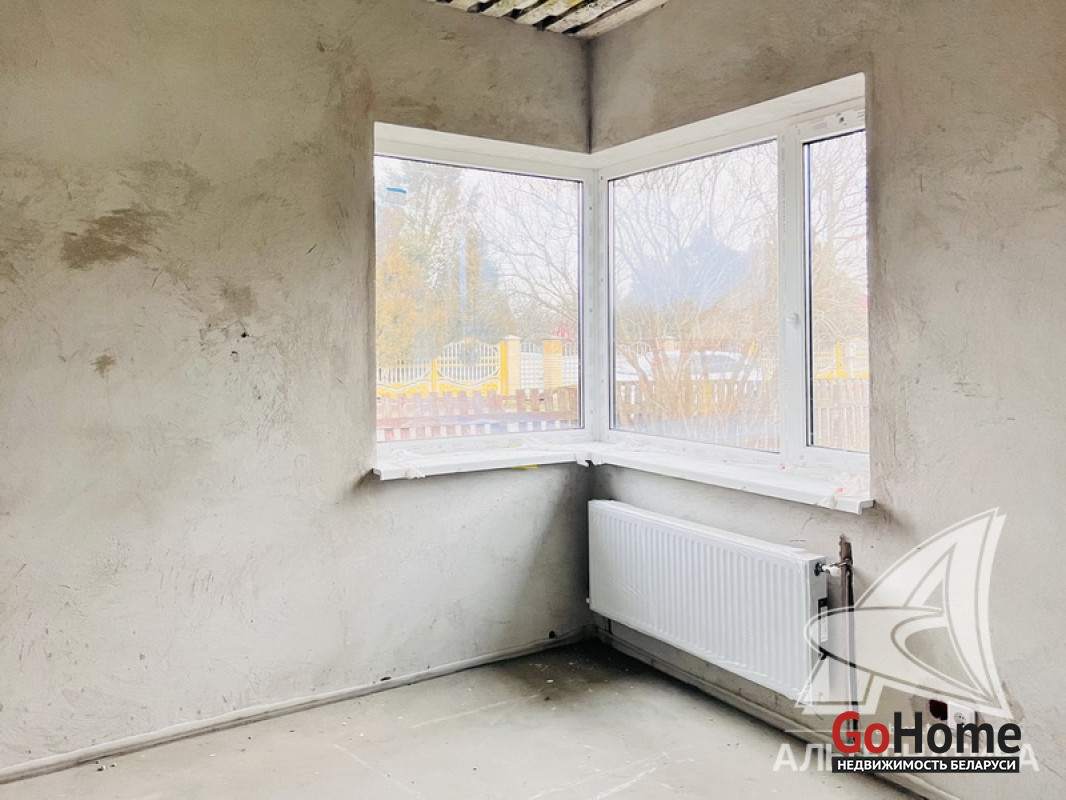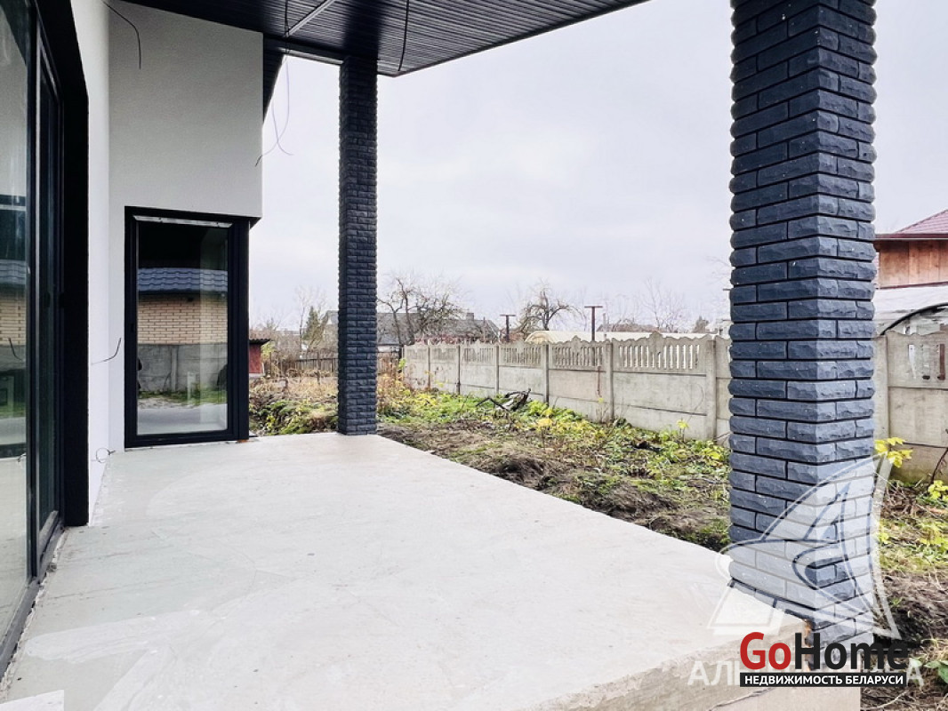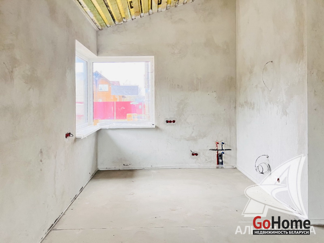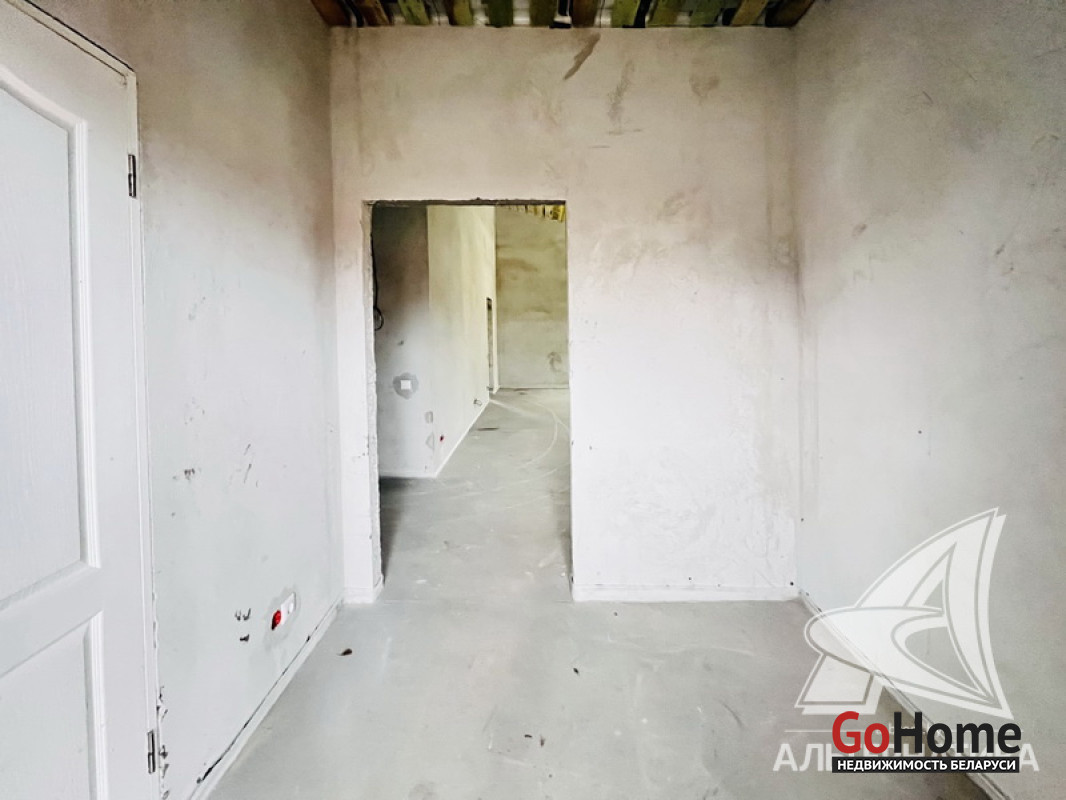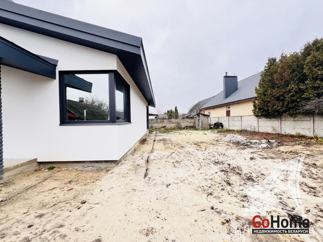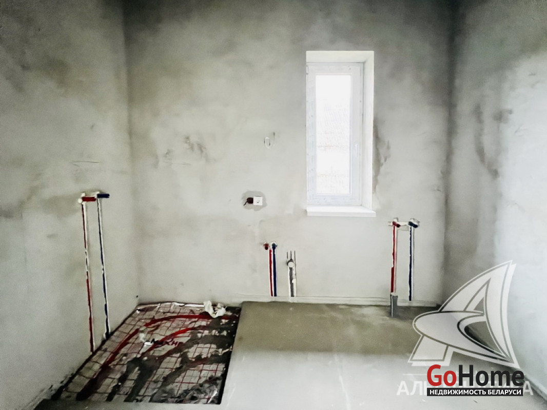 Жилой дом под чистовую отделку в Брестском р-не. 2025 г.п. 1 этаж. Общ.СНБ - 124,4 кв.м, общ.- 124,4 кв.м, жил.~ 80,0 кв.м, кух.~ 15,0 кв.м. 4 комнаты, высота потолка - 2,80 м.