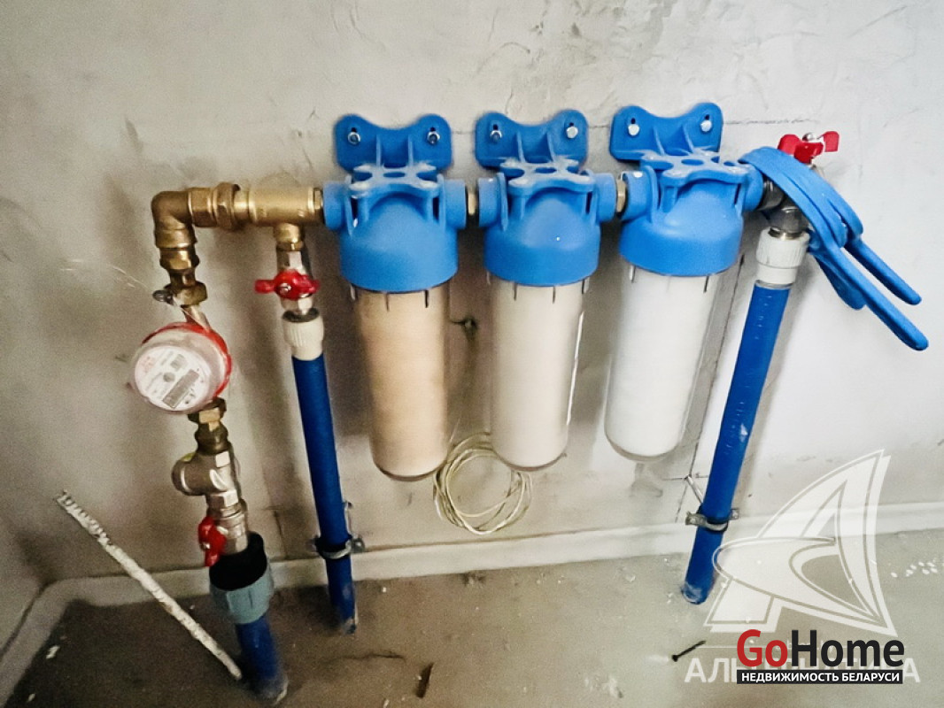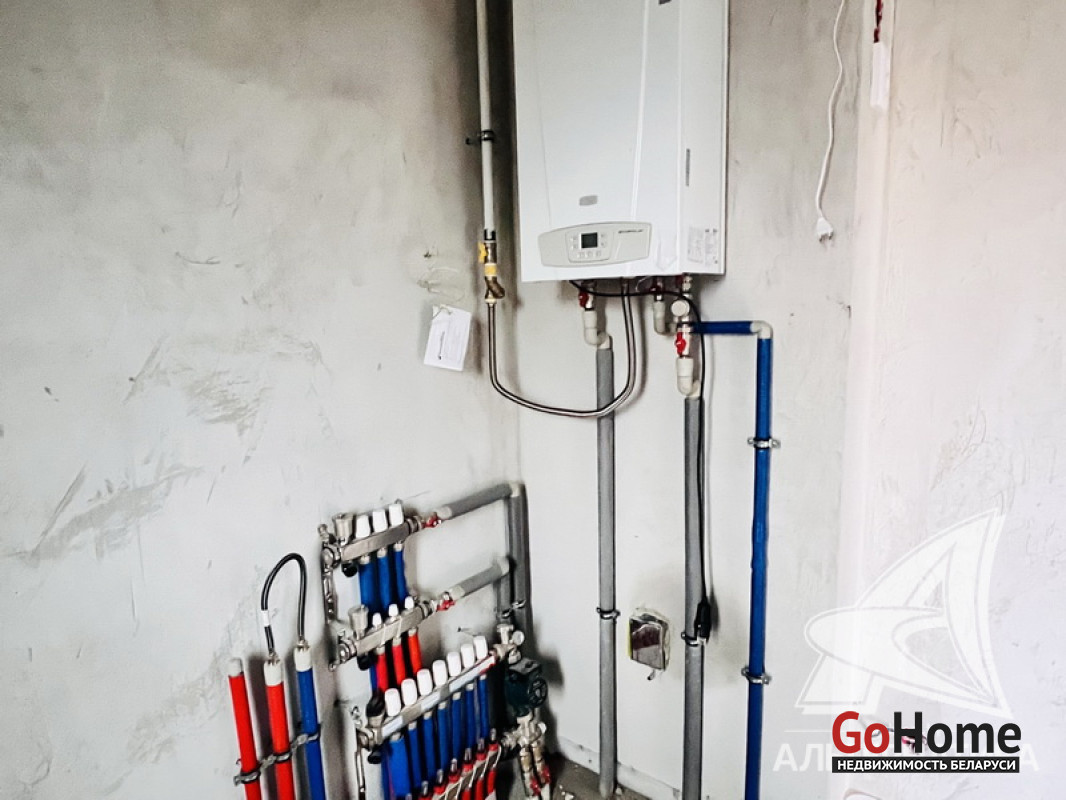 Коммуникации: отопление - газовый котел, газ - централизованный (в доме), водоснабжение - централизованный водопровод, электричество - централизованное, канализация - автономная.