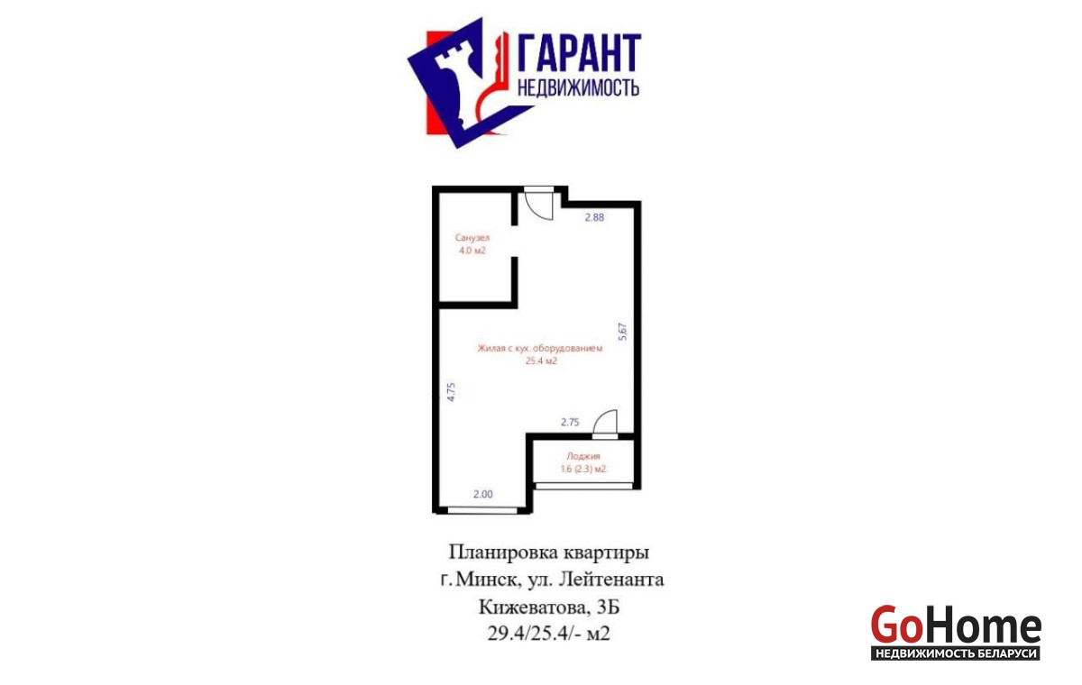 Площадь: СНБ – 31 м2/ Общая – 29,4 м2/ Жилая – 25,4 м2.