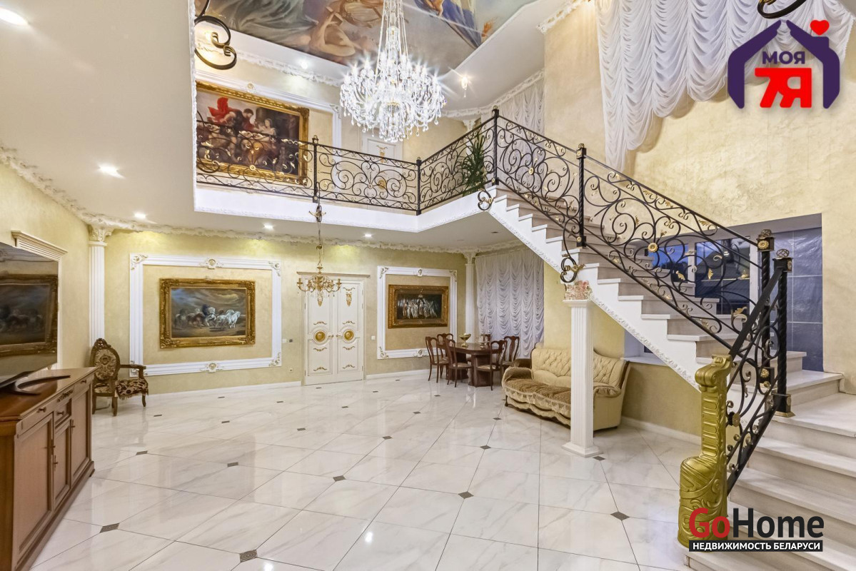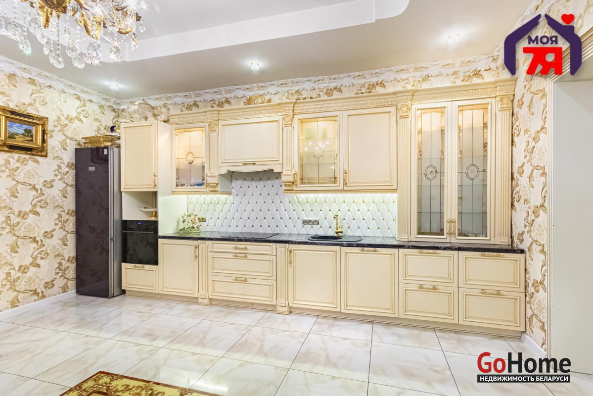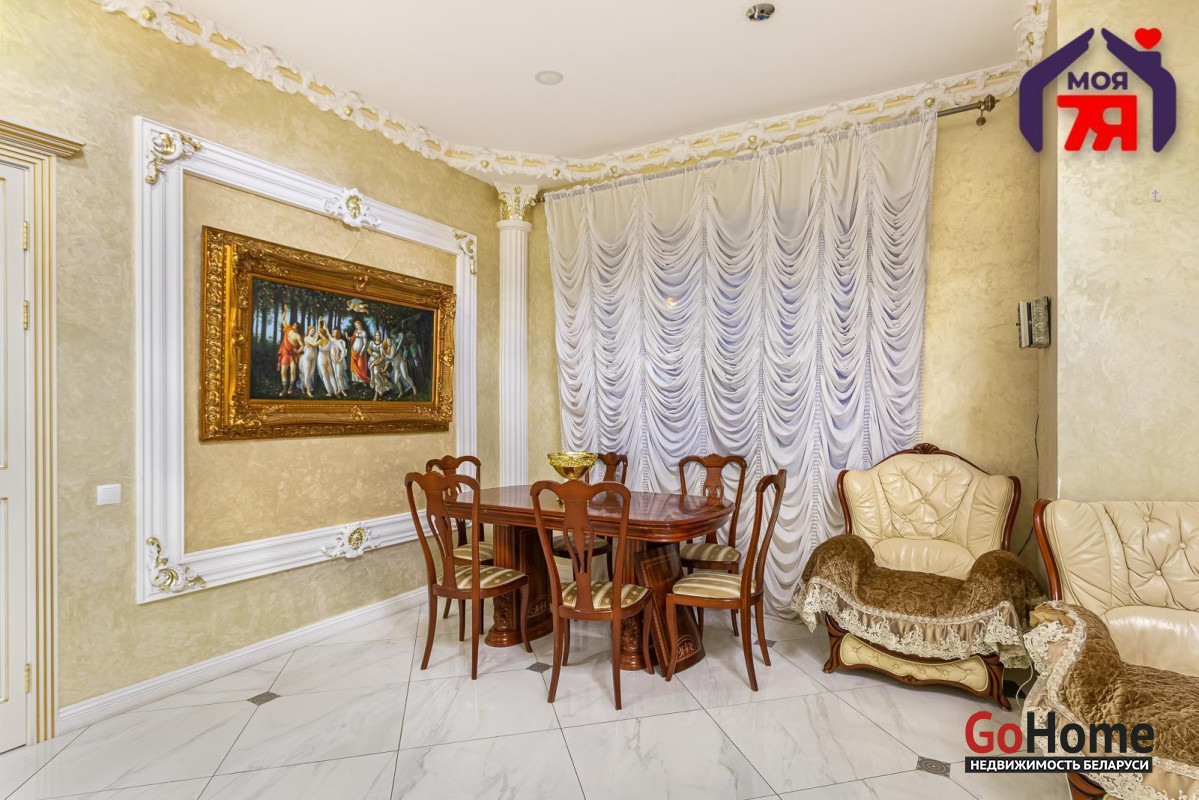 - Общая площадь дома составляет 448.2 м2, из которых 135.7 м2 занимает жилое пространство. В доме расположено 4 жилых комнаты, которые позволят с комфортом разместиться большой семье.- Особенностью этого дома является роскошный ремонт, выполненный в венецианском стиле, большинство стен и потолков декорированы позолотой и полотнами картин известных художников, олицетворяя богатство и величие Венеции того времени. Лепнина на стенах придает помещению особый шарм и изысканность, а кованая лестница, поддерживаемая колонной, гармонично дополняет стиль интерьера. Лепнина выполнена из гипса ручным способом.- Напольное покрытие первого этажа украшено керамогранитом с системой подогрева, а во всех комнатах установлена система подогрева (туалет, ванная комната, холл, кухня и прихожая). - Большие окна со шпросами (Maco), массивные деревянные двери, чешская люстра и телевизор диагональю 65" дополняют изысканный дизайн интерьера.- Но самое главное - вся мебель и элементы декора выполнены в венецианском стиле и остаются в доме. Они создают неповторимую атмосферу роскоши и элегантности.- В дом введены все необходимые коммуникации. Для дополнительного комфорта и тепла в доме установлены два котла (Bosch и Rinnai), а в случае отсутствия отопления можно использовать дополнительный топливный котел. также оборудовано несколько санузлов для удобства жильцов.- На цокольном этаже дома возможно размещение коммерческих объектов, например, парковки на 6 автомобилей. Это обеспечит дополнительный доход и удобство для жителей дома. Входные ворота в гараж от известного производителя Hormann.