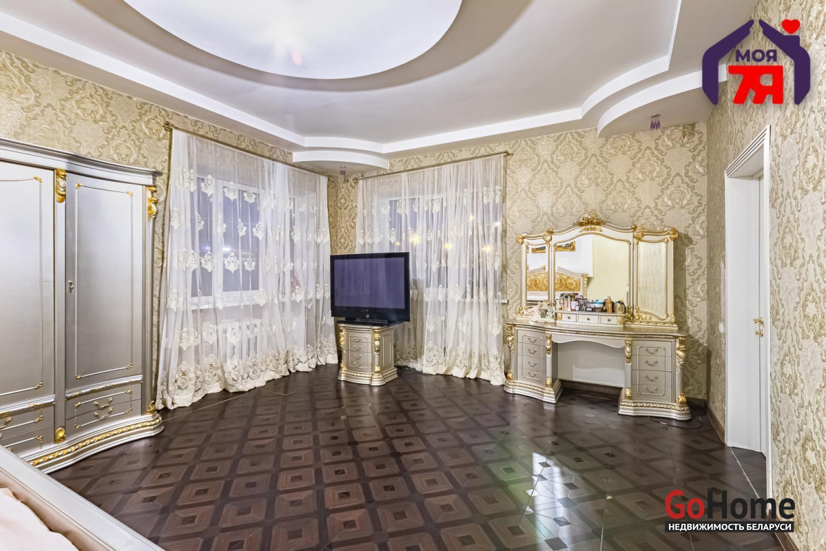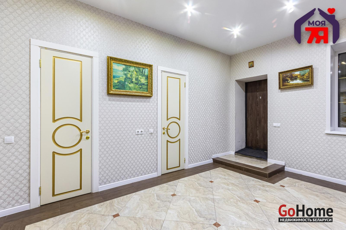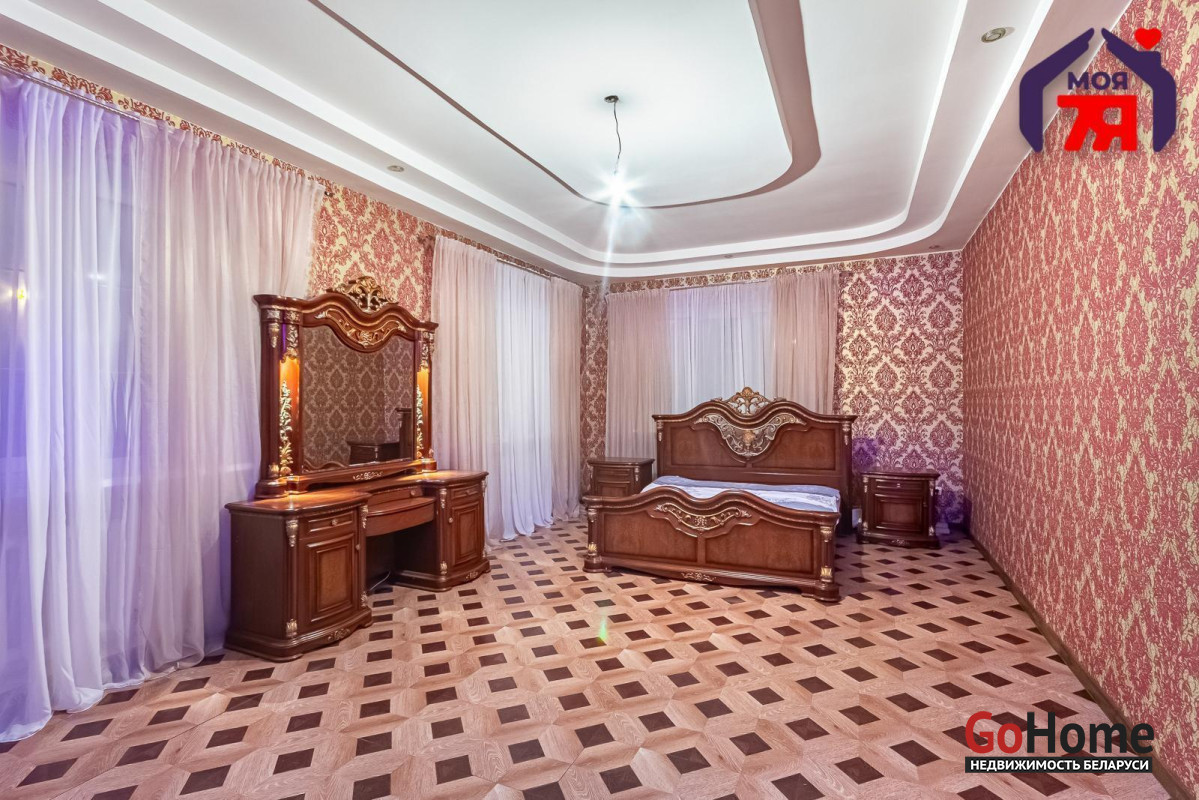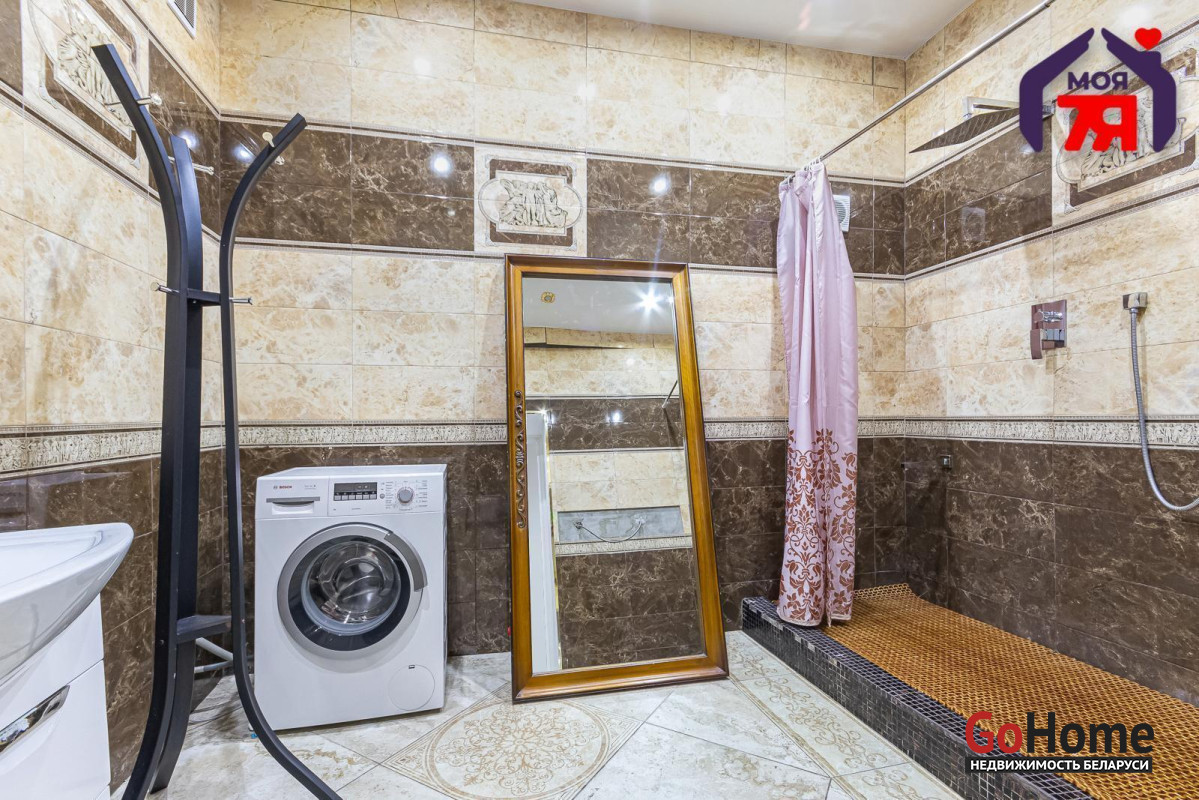 - Общая площадь дома составляет 448.2 м2, из которых 135.7 м2 занимает жилое пространство. В доме расположено 4 жилых комнаты, которые позволят с комфортом разместиться большой семье.- Особенностью этого дома является роскошный ремонт, выполненный в венецианском стиле, большинство стен и потолков декорированы позолотой и полотнами картин известных художников, олицетворяя богатство и величие Венеции того времени. Лепнина на стенах придает помещению особый шарм и изысканность, а кованая лестница, поддерживаемая колонной, гармонично дополняет стиль интерьера. Лепнина выполнена из гипса ручным способом.- Напольное покрытие первого этажа украшено керамогранитом с системой подогрева, а во всех комнатах установлена система подогрева (туалет, ванная комната, холл, кухня и прихожая). - Большие окна со шпросами (Maco), массивные деревянные двери, чешская люстра и телевизор диагональю 65" дополняют изысканный дизайн интерьера.- Но самое главное - вся мебель и элементы декора выполнены в венецианском стиле и остаются в доме. Они создают неповторимую атмосферу роскоши и элегантности.- В дом введены все необходимые коммуникации. Для дополнительного комфорта и тепла в доме установлены два котла (Bosch и Rinnai), а в случае отсутствия отопления можно использовать дополнительный топливный котел. также оборудовано несколько санузлов для удобства жильцов.- На цокольном этаже дома возможно размещение коммерческих объектов, например, парковки на 6 автомобилей. Это обеспечит дополнительный доход и удобство для жителей дома. Входные ворота в гараж от известного производителя Hormann.