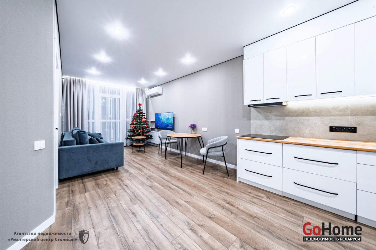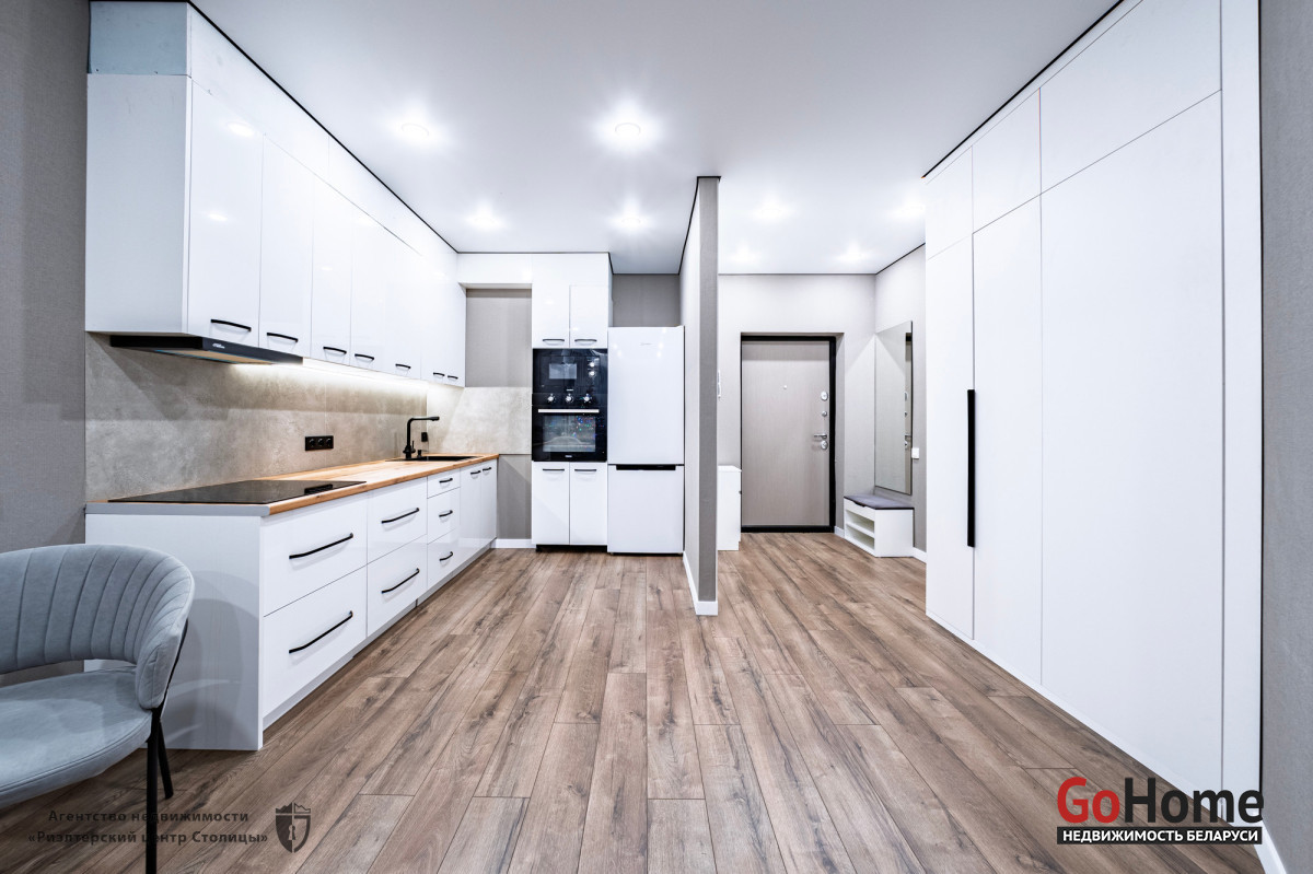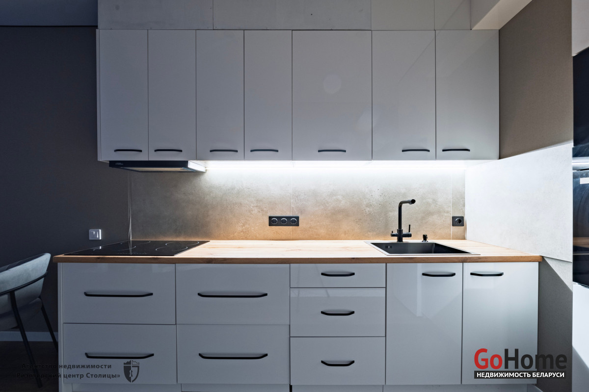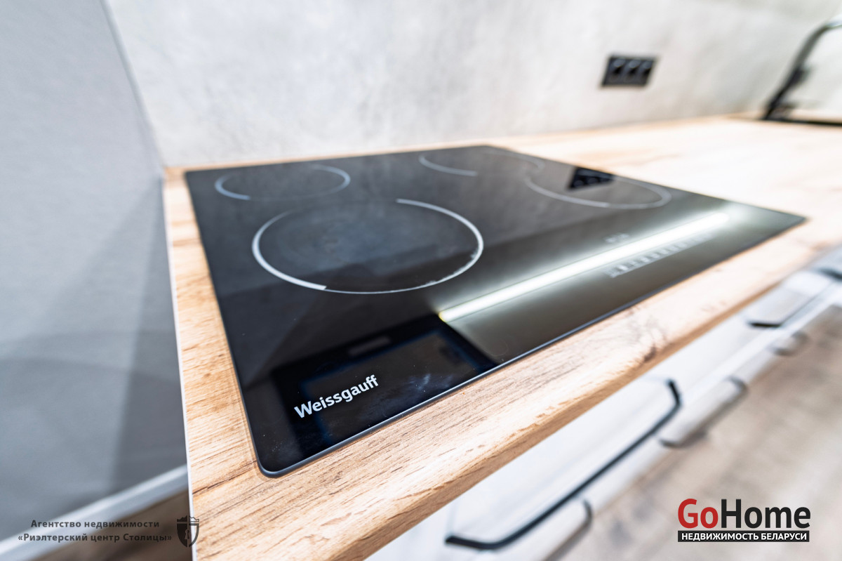 — Встроенная кухня с индукционной панелью, духовым шкафом, посудомойкой, холодильником, микроволновкой