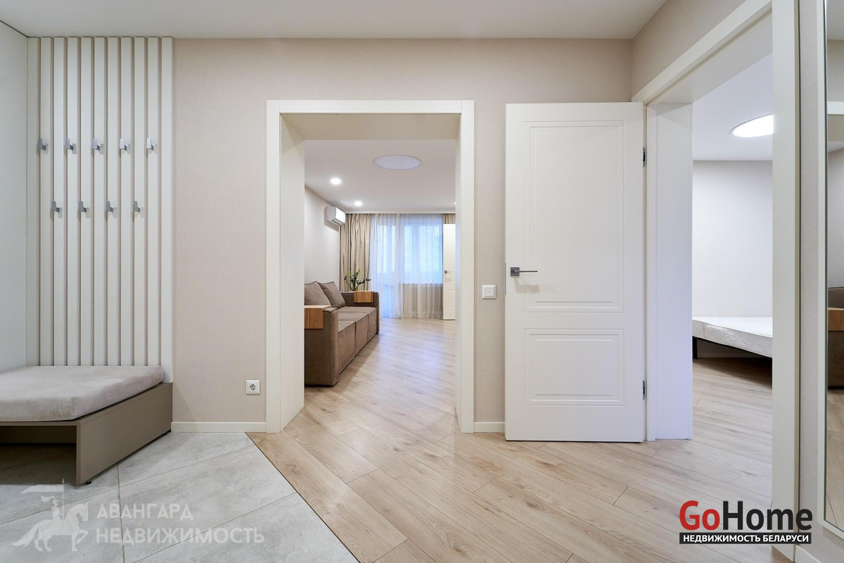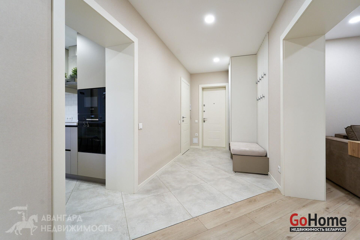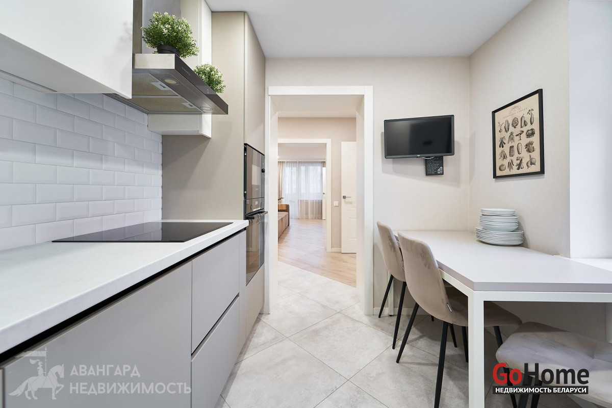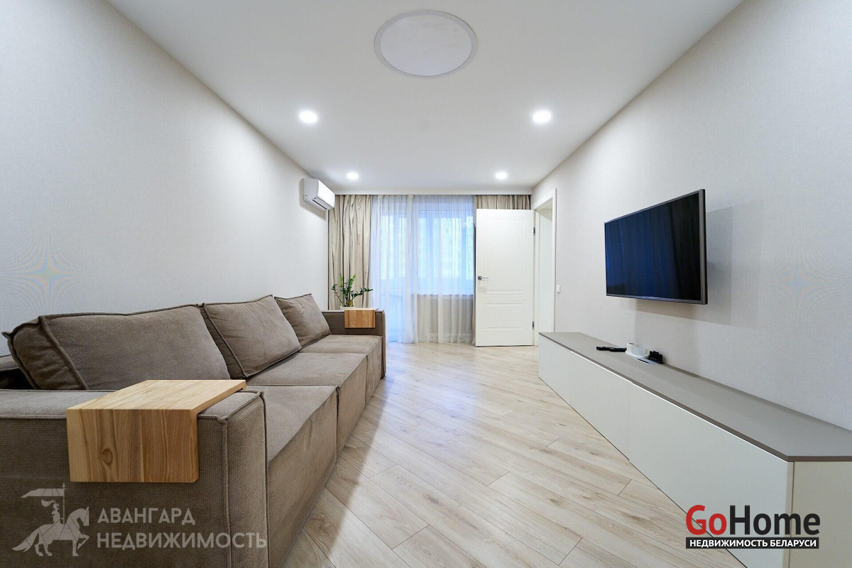 Площадь квартиры по СНБ 71.1 м2. Высота потолков составляет 2.55 м. В квартире официально согласована перепланировка. Так же важным плюсом является то, что по всему периметру квартиры проведена шумоизоляция помещения, стены и потолок. Квартира с удобной планировкой. Три жилые комнаты: изолированная 11.5м2, 16м2 с выходом на застекленную лоджию, установлен кондиционер инвертор (охлаждение и обогрев), 12.1м2 с удобной гардеробной (много систем хранения, зеркало, шкаф). Площадь кухни 7.6м2 оснащена качественной встроенной техникой, укомплектованапосудомоечная машина, духовой шкаф, индукционная плита, встроенная микроволновая печь, холодильник, (вся техника Bosch). Проточный фильтр для воды 3 ступени. Санузел совмещён, в ванной комнате итальянская плитка и керамогранит, проведен тёплый пол, большая угловая ванна, проточный водонагреватель 6кв, сантехника с системой Roca, электрический полотенцесушитель, стиральная и сушильная машина LG на 8.5 кг. Также в квартире установлены трехкамерные стеклопакеты от производителя Rehau, межкомнатные двери из массива со скрытыми и магнитными петлями, ламинат класса 33 Villeroy & Boch.