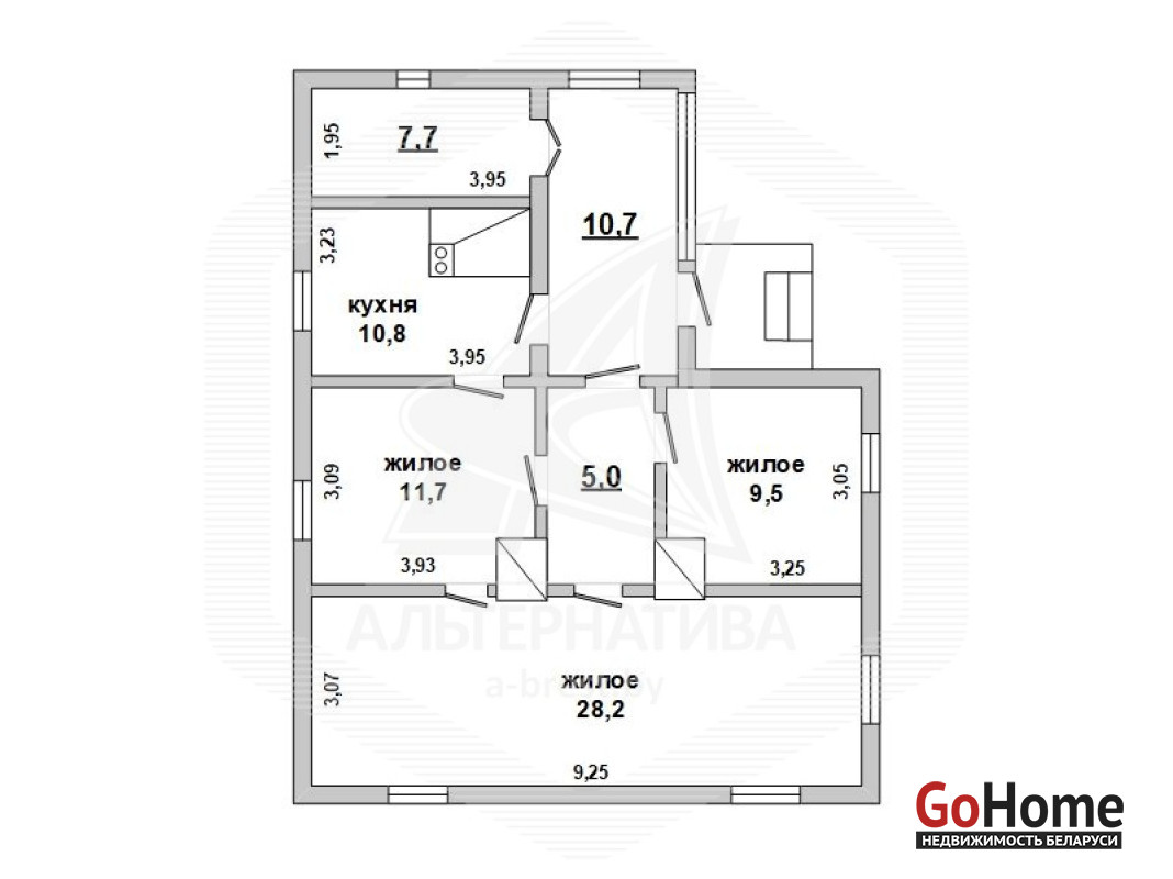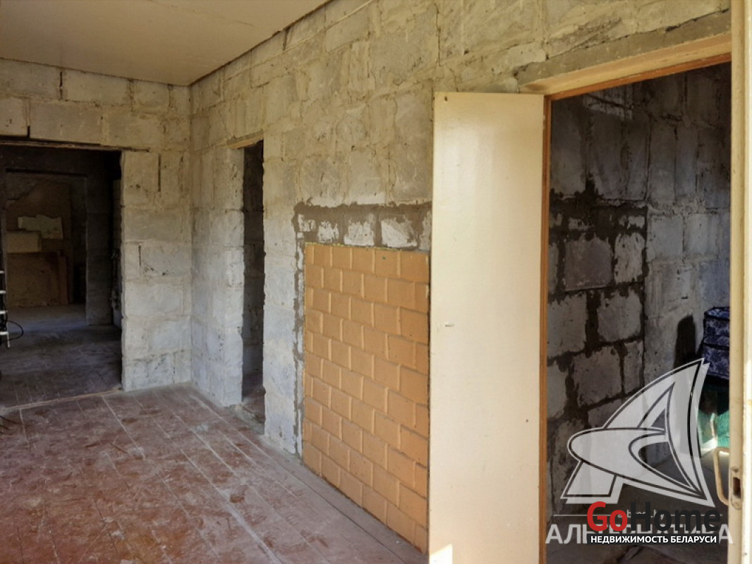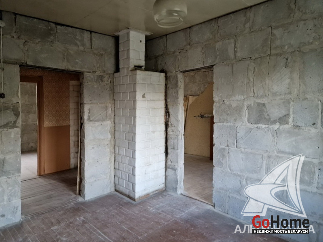 Жилой дом в Кобринском р-не. 1975 г.п. 1 этаж. Общ.СНБ - 83,6 кв.м, общ.- 72,9 кв.м, жил.- 49,4 кв.м, кух.- 10,8 кв.м. 3 комнаты, высота потолка - 2,50 м.