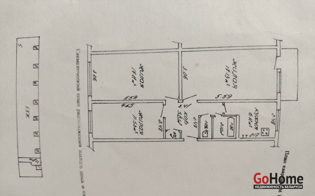 Все комнаты раздельные 17м, 17м,12кв м. Новая входная дверь, окно ПВХ только на кухне.