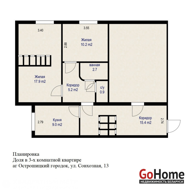 Продаём долю в 3-х комнатной квартире, что составляет две раздельные комнаты 17.8 и 10.2 метров, раздельный санузел. Выполнен свежий косметический ремонт.