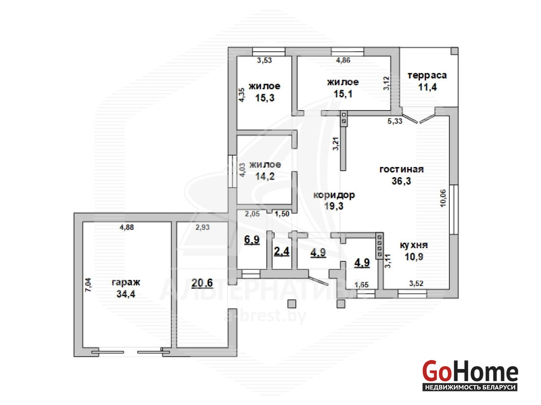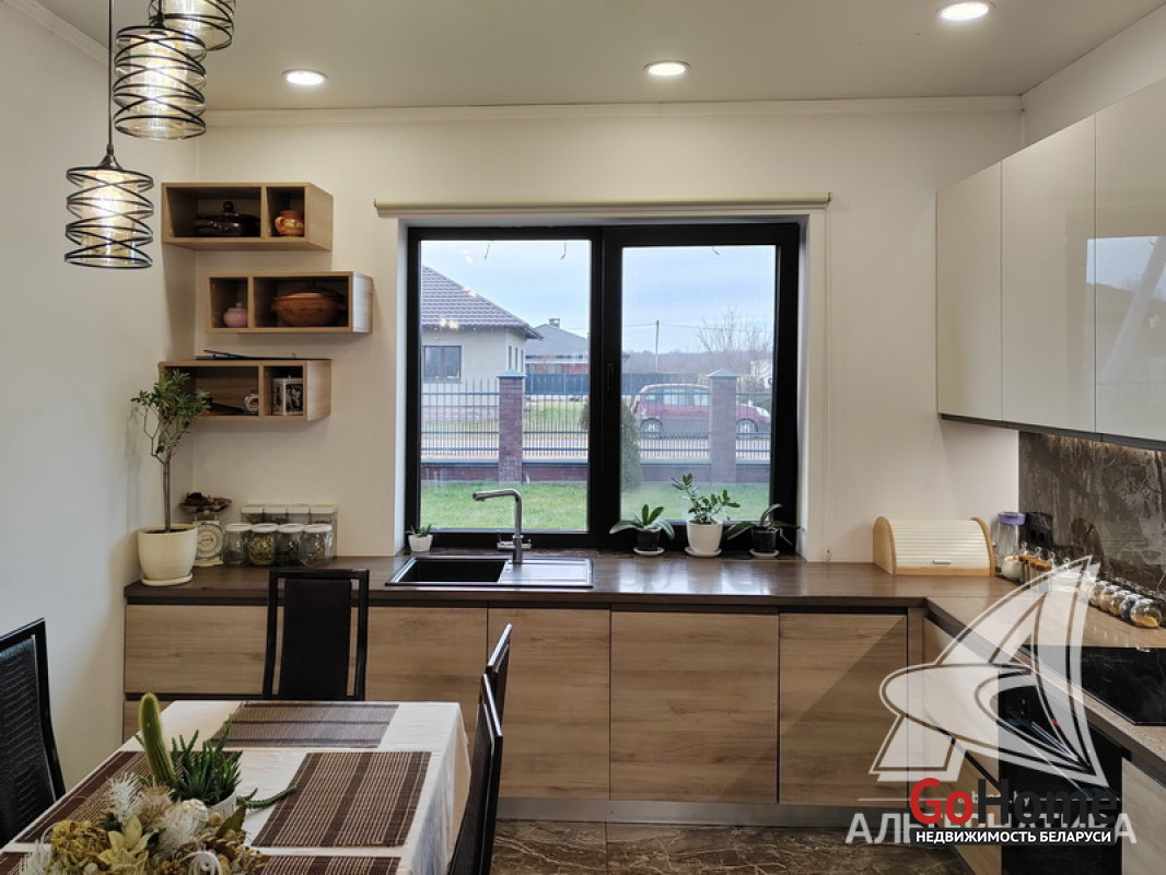 Жилой дом в Брестском р-не. 2021 г.п. 1 этаж. Общ.СНБ - 188,6 кв.м, общ.- 130,2 кв.м, жил.- 80,9 кв.м, кух.- 10,9 кв.м. 4 комнаты, высота потолка - 3,00 м.