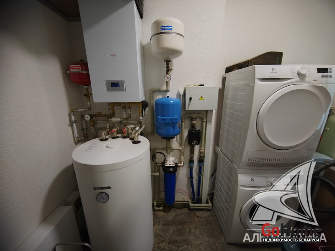 Коммуникации: отопление - электрический котел, водоснабжение - скважина и гидрофор, электричество - централизованное, канализация - автономная.