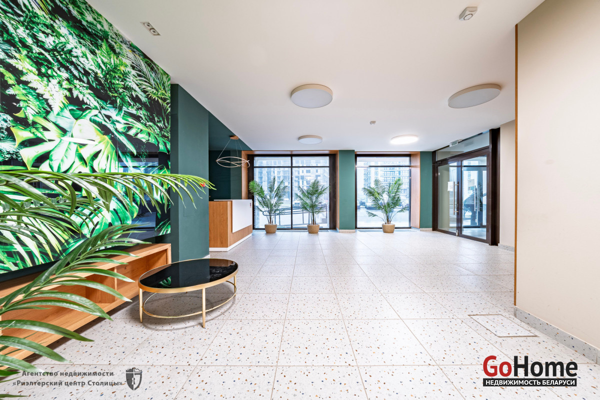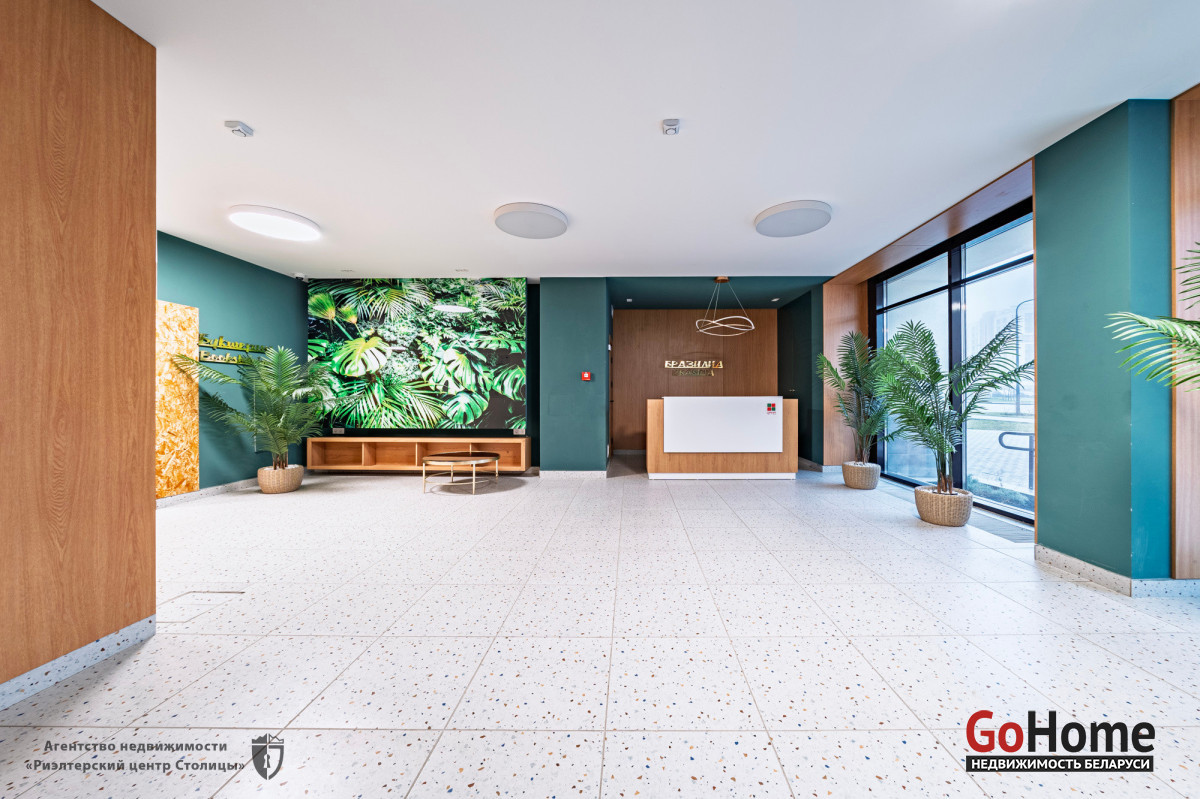 Просторное лобби на первом этаже с консьерж-службой, комнатой матери и ребенка и гостевым холлом.