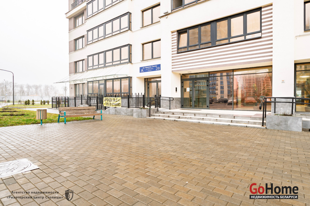 Выезд на ул. Н. Теслы прямо со двора с развитой сетью общественного транспорта.