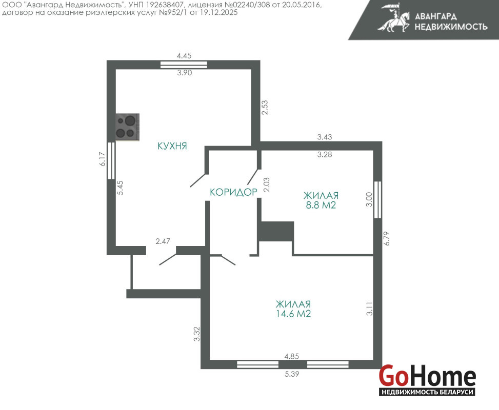 1й этаж: прихожая, коридор, кухня, жилая комната, санузел, топочная