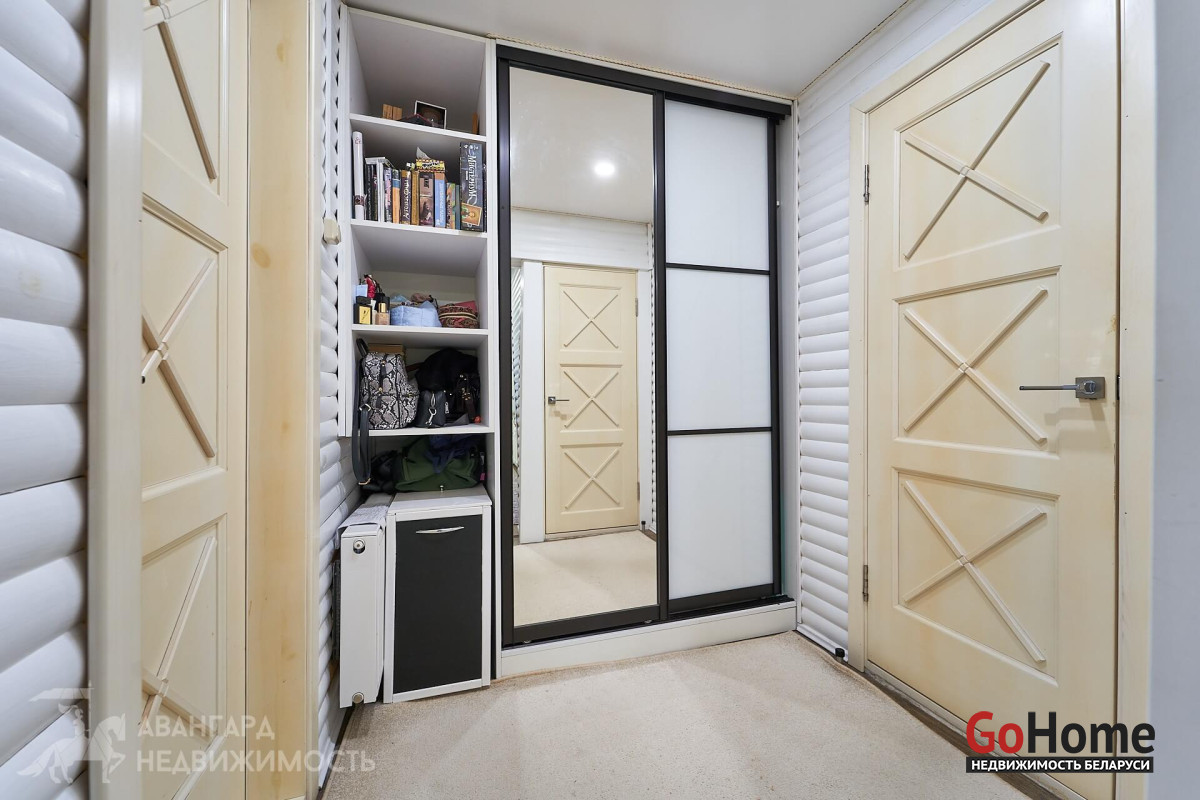 Дом бревенчатый, облицован кирпичом и обшит блок-хаус панелями – отличная теплоизоляция, отсутствие шума; зимой тепло, а летом прохладно. Кровля – металлочерепица.