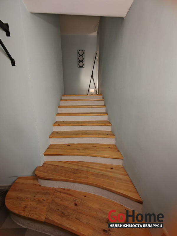 Планировка: две изолированные комнаты, кухня, раздельный санузел, просторный коридор и внутренняя лестница между уровнями. Лоджия застеклена ПВХ‑пакетами. В квартире выполнен жилой ремонт: стены окрашены/оклеены, полы — ламинат и линолеум, потолки — покраска и натяжной, установлены деревянные межкомнатные двери. На лестнице — деревянные ступени. Санузел отделан плиткой.